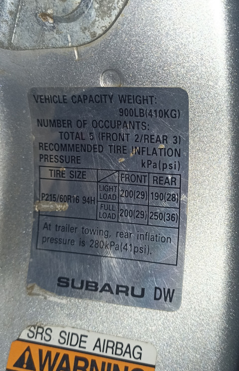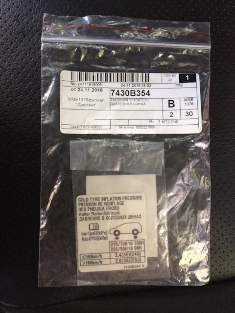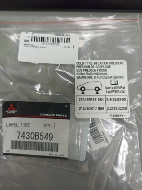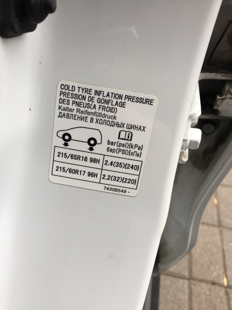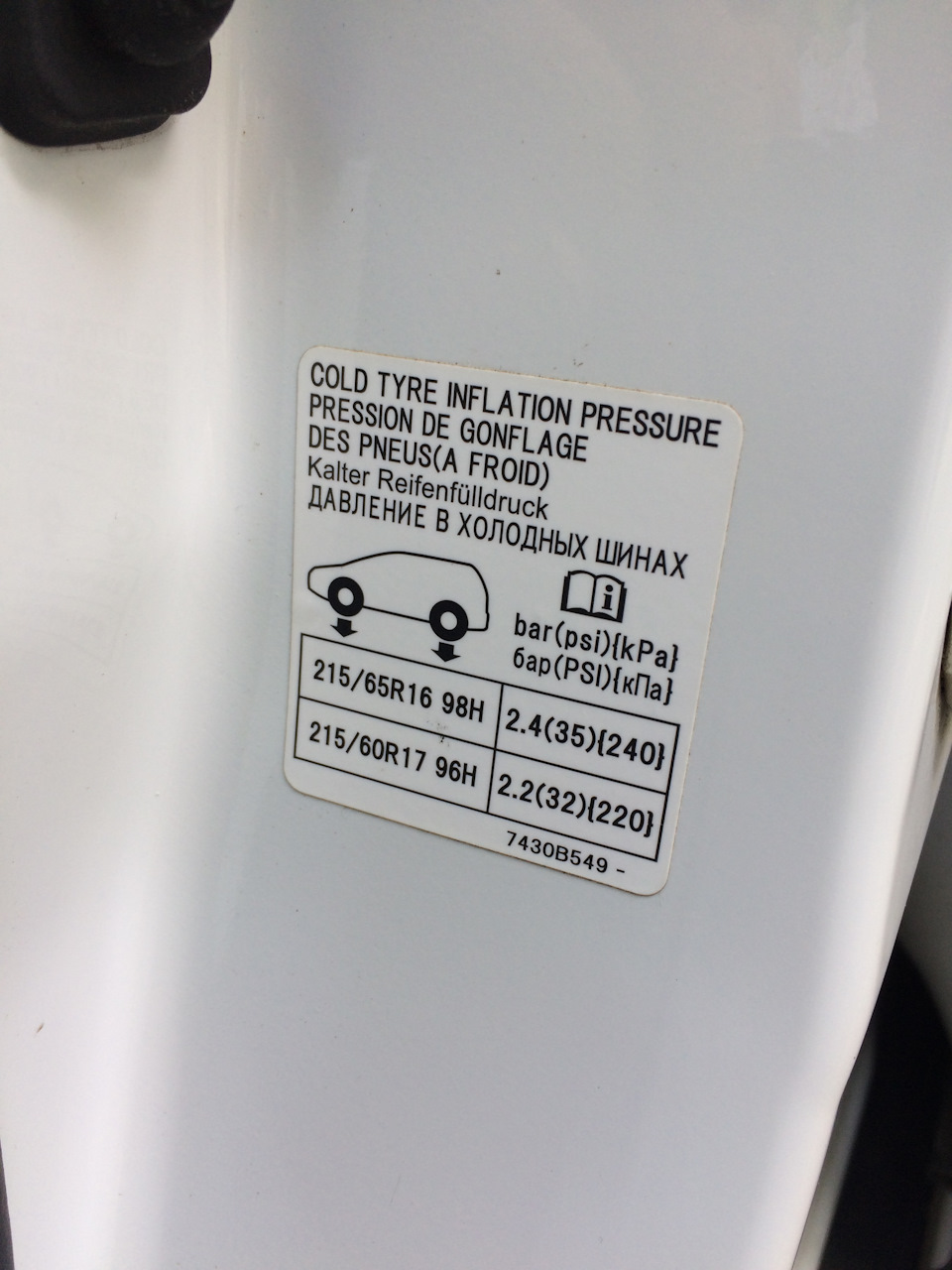Наклейка в проем водительской двери (какая размерность шин и как накачивать)