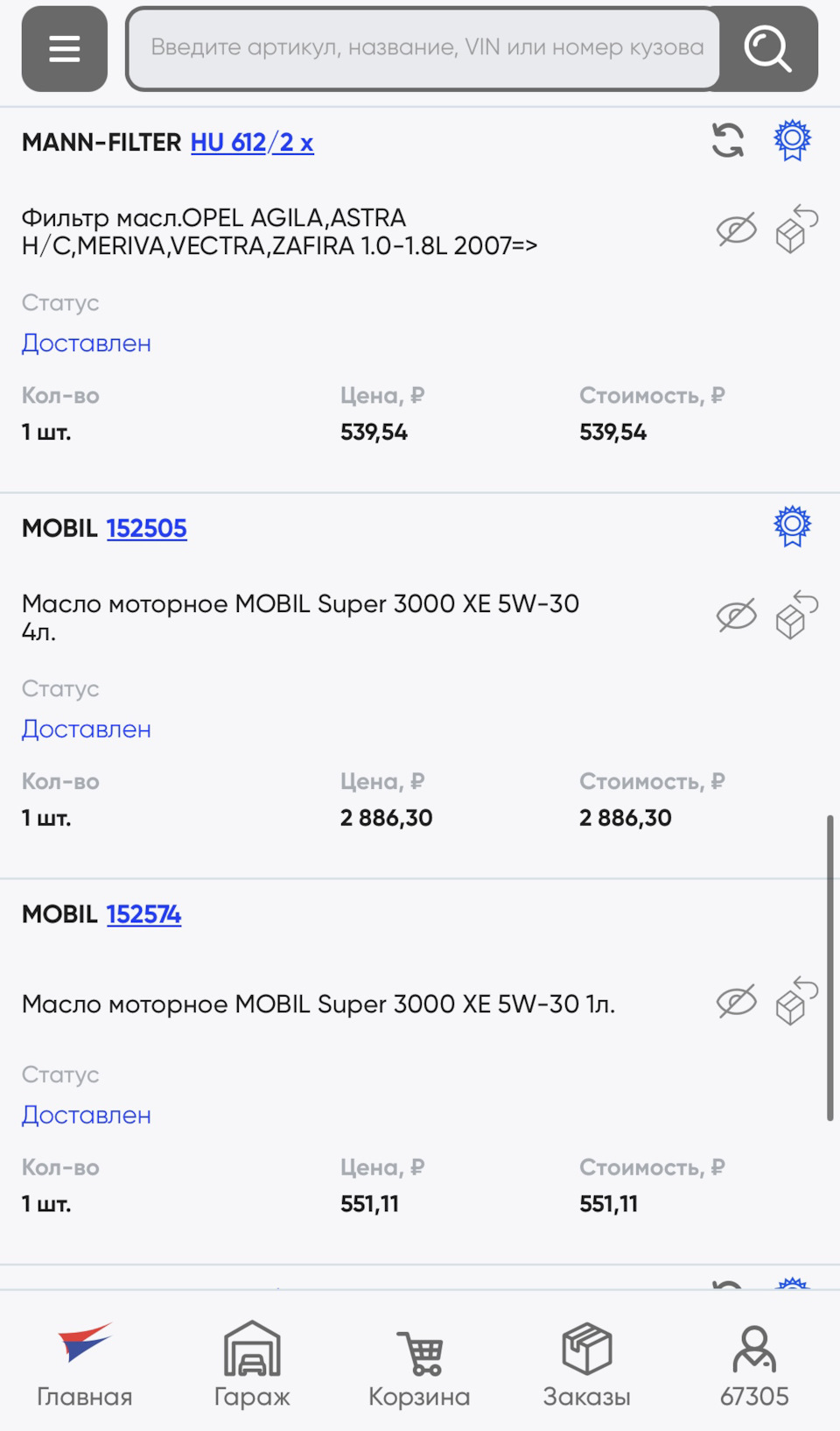 - Масло моторное (151456, 151189 — Европа, 152504 — Турция SUPER 3000 XE 5W-30 1L)