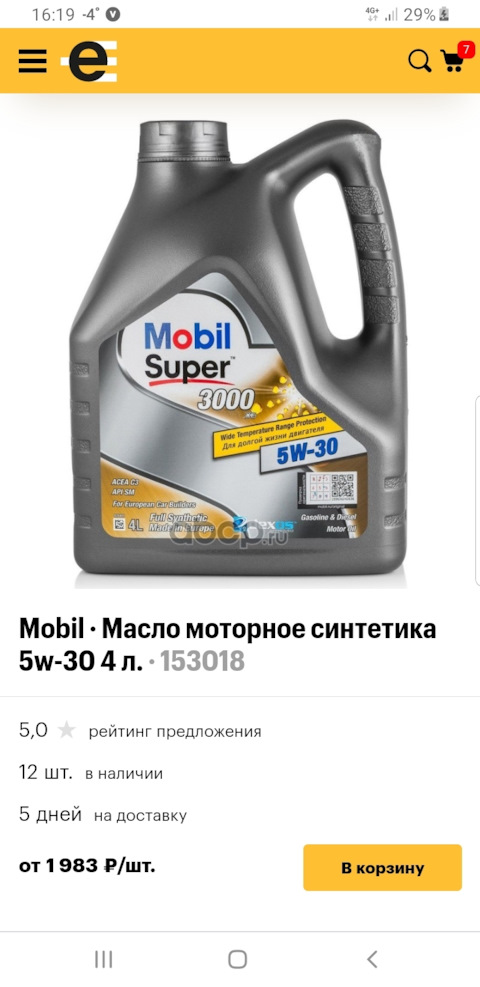 - Масло Mobil Super 3000 XE 5W30 мот син (4л)