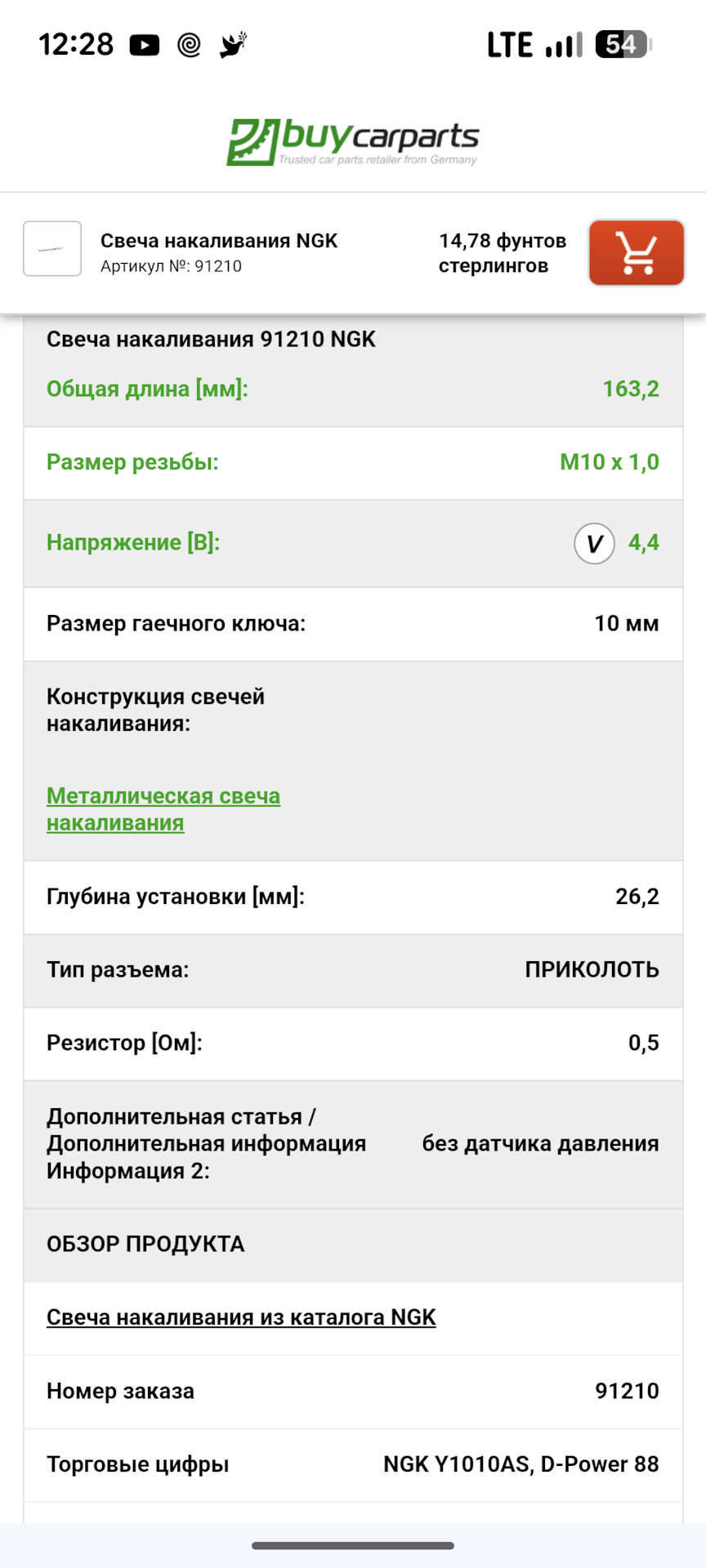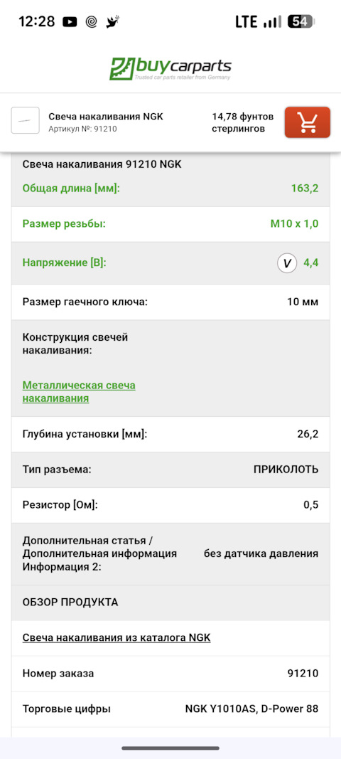 - Свеча накаливания 91210