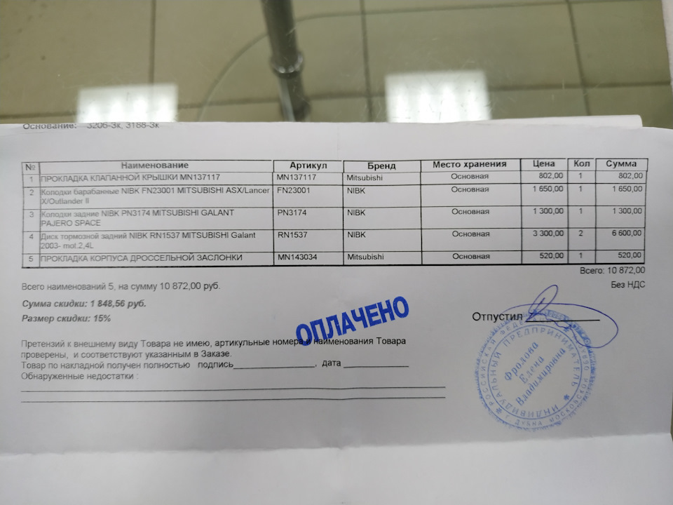 - Тормозные колодки (дисковые), задние