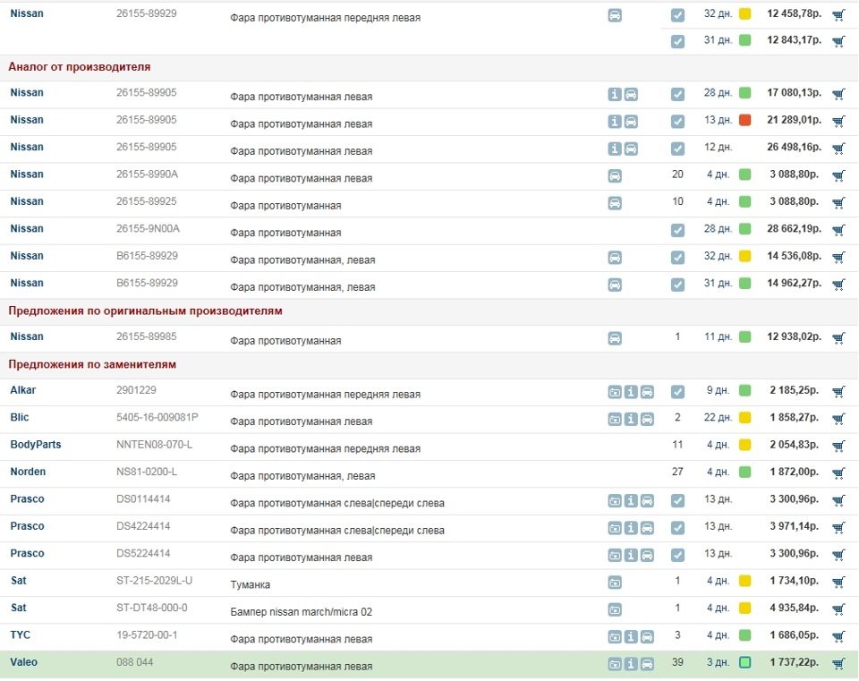 Противотуманная фара, слева