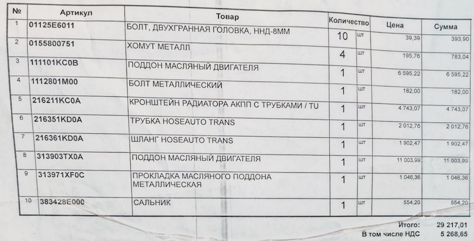 - Прокладка поддона коробки передач