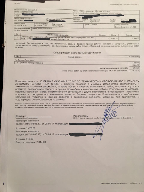 Техническое обслуживание (ТО) 50 в "Юнион Моторс" ( на Калужском шоссе)