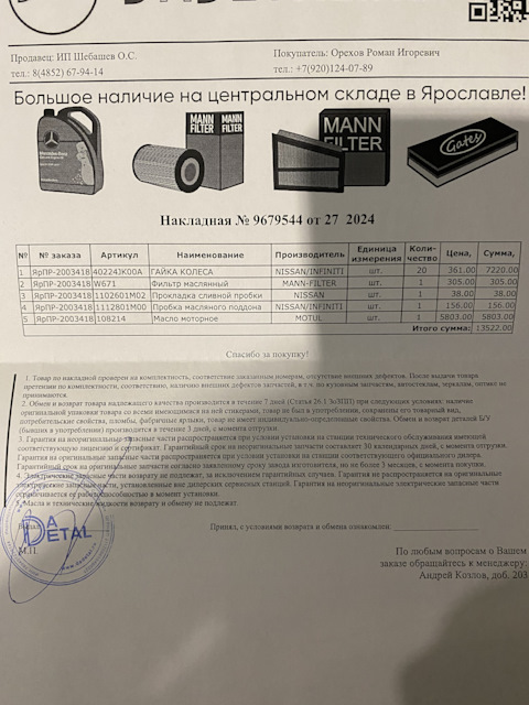 1. Замена гаек и масла, проверка давления VQ37VHR