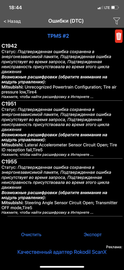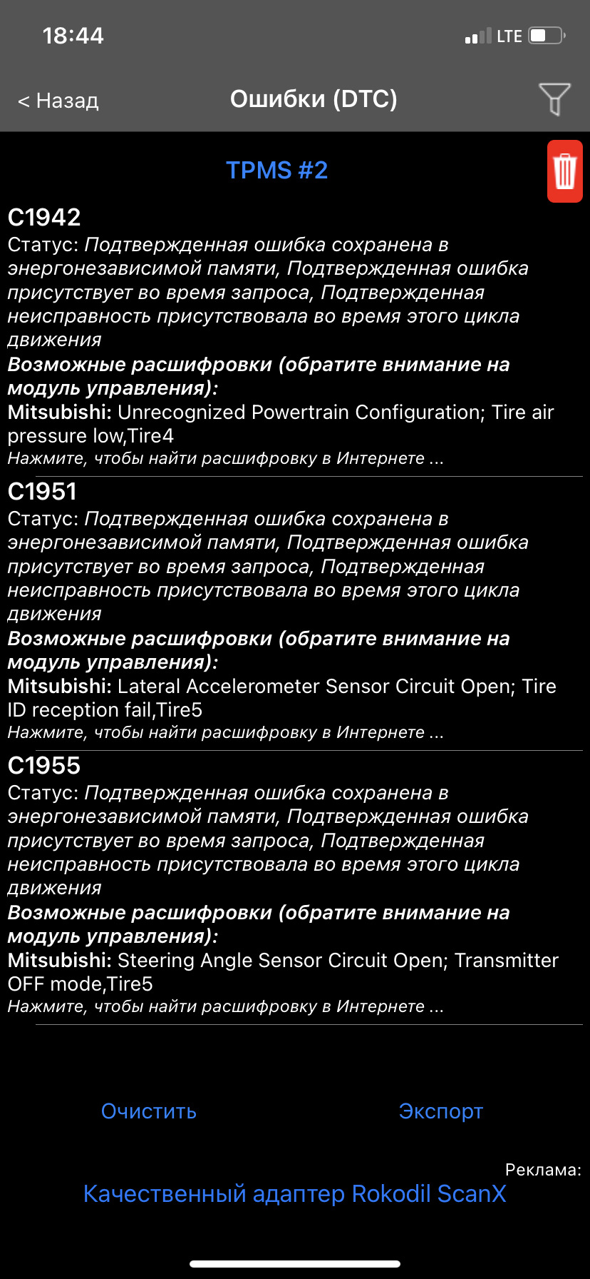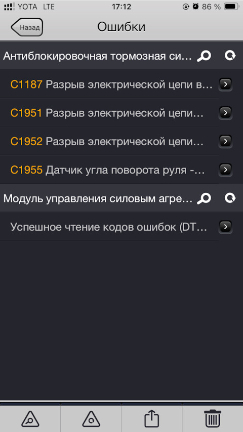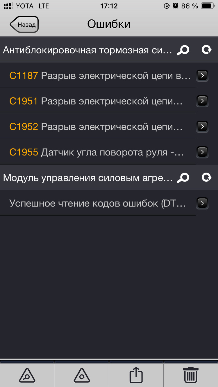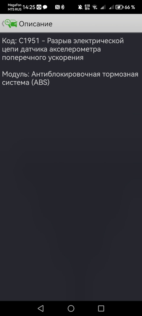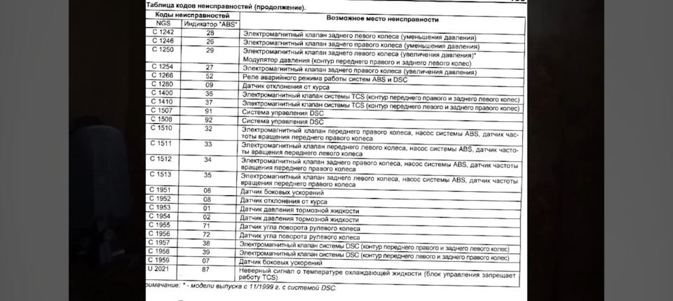 Ошибка ОБД. Категория: Шасси / ABS / ESP