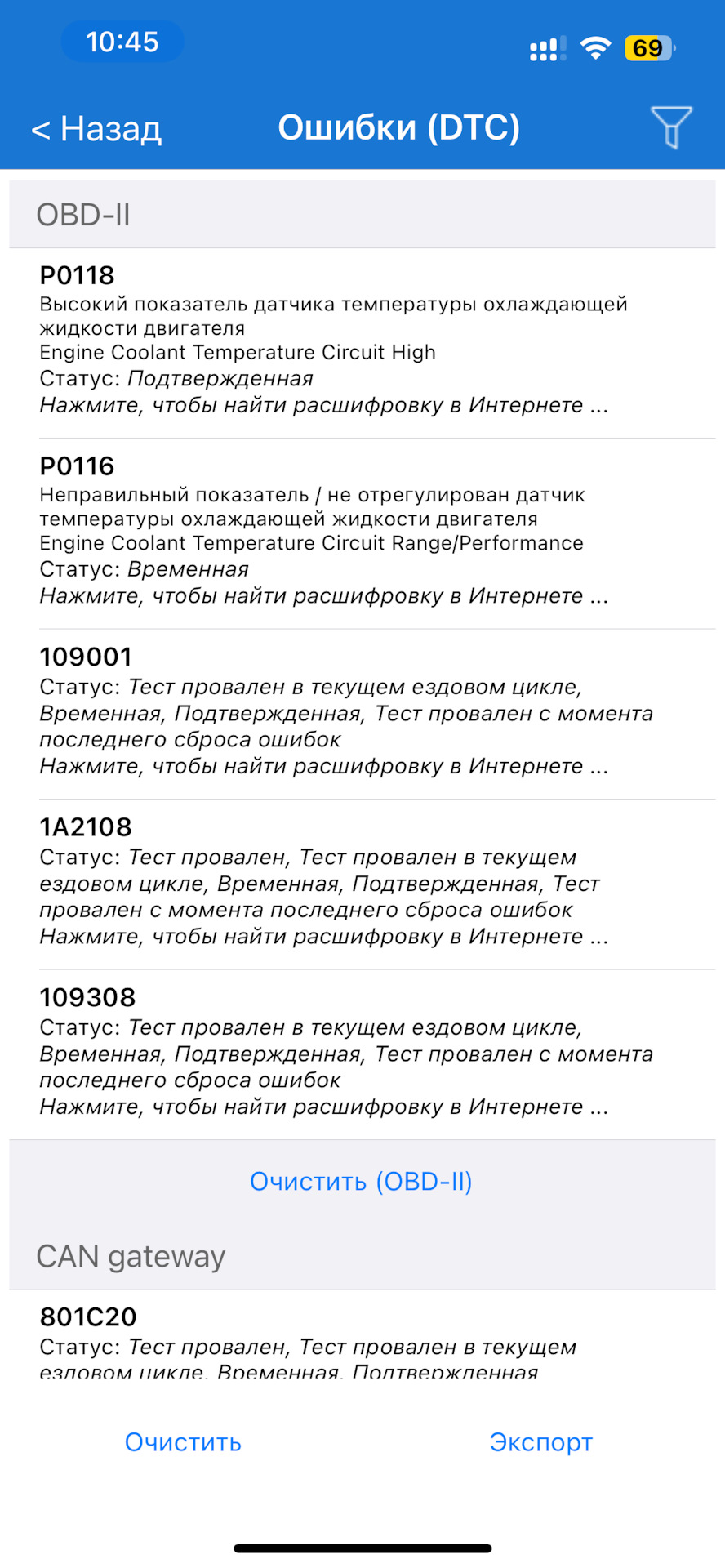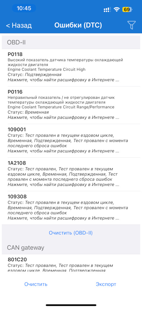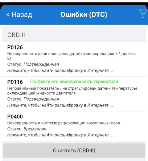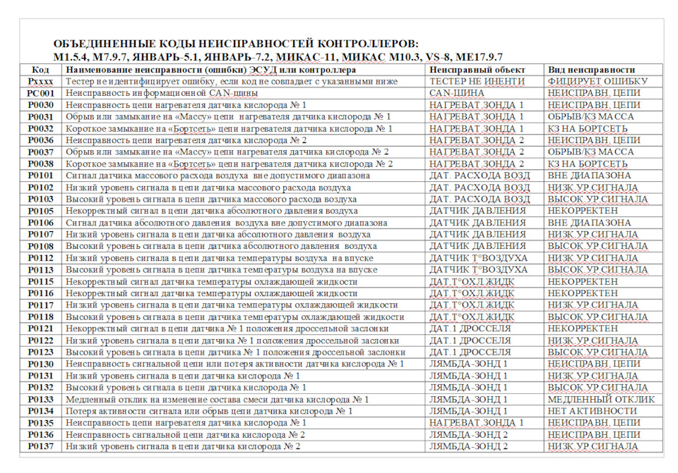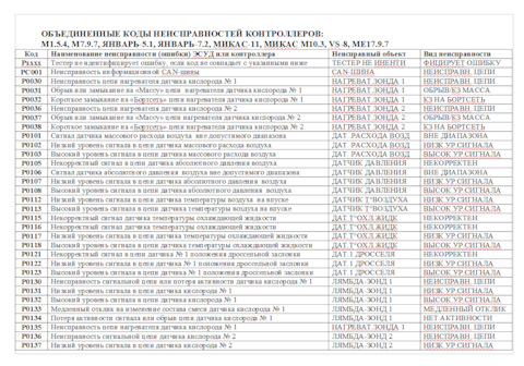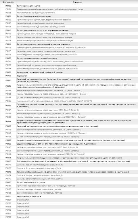 Ошибка ОБД. Категория: Топливо / воздух / температура