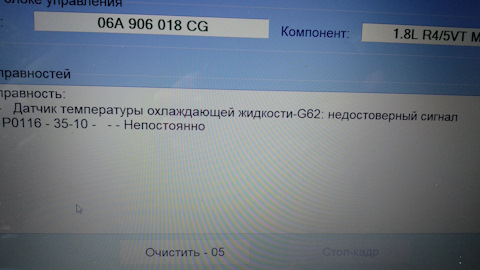 - Выход сигнала датчика температуры охлаждающей жидкости из допустимого диапазона