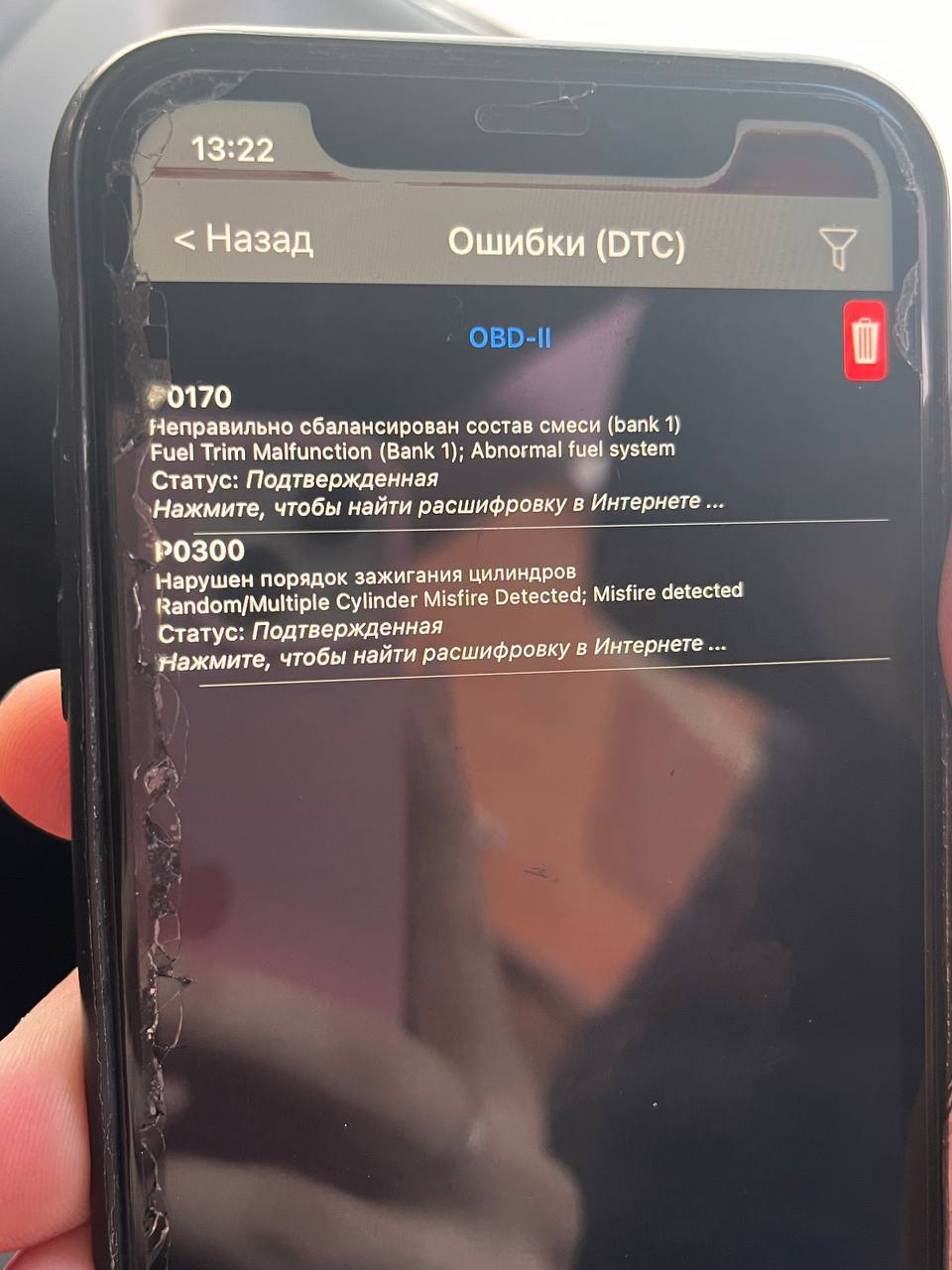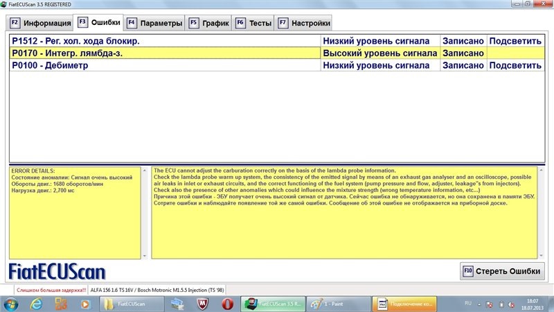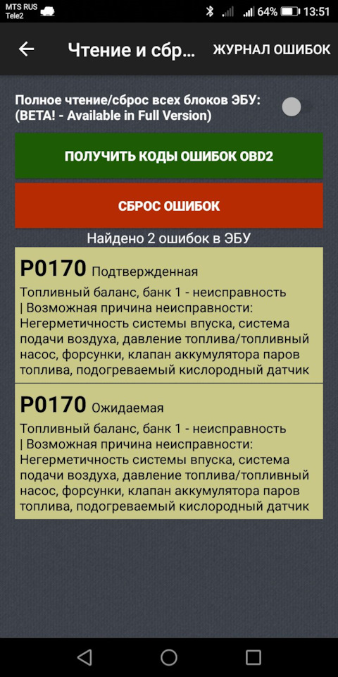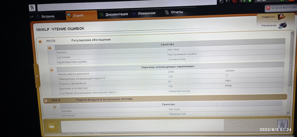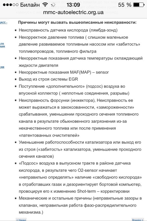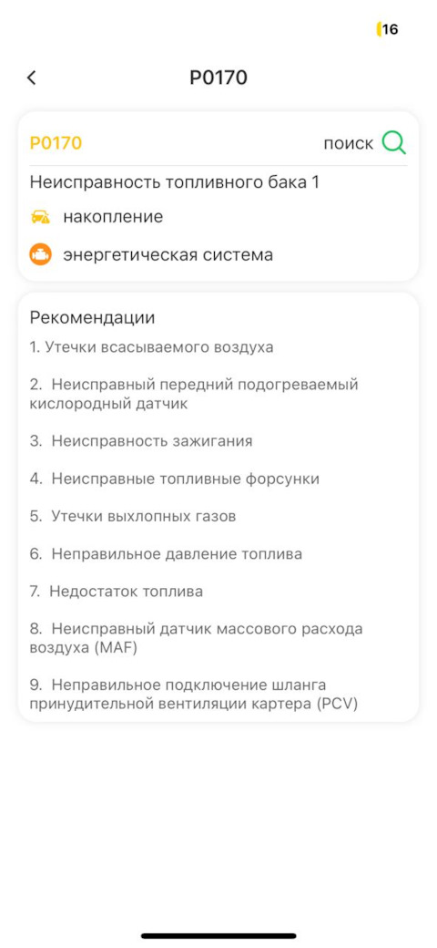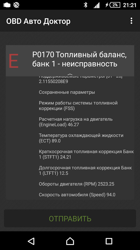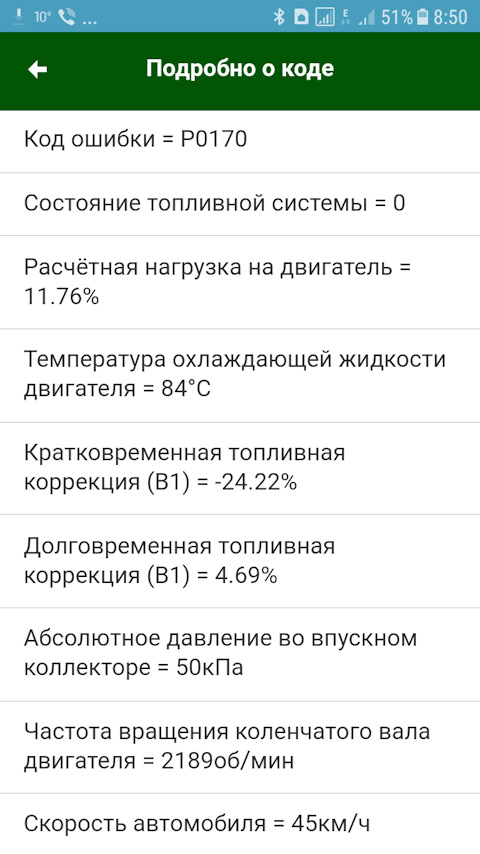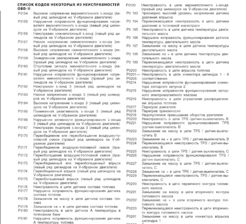 Ошибка ОБД. Категория: Топливо / воздух / температура