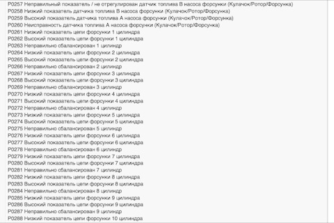 Ошибка ОБД. Категория: Топливная система / форсунки / насос