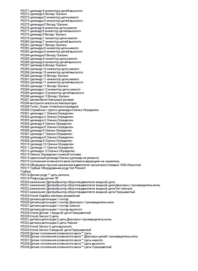 Ошибка ОБД. Категория: Топливная система / форсунки / насос