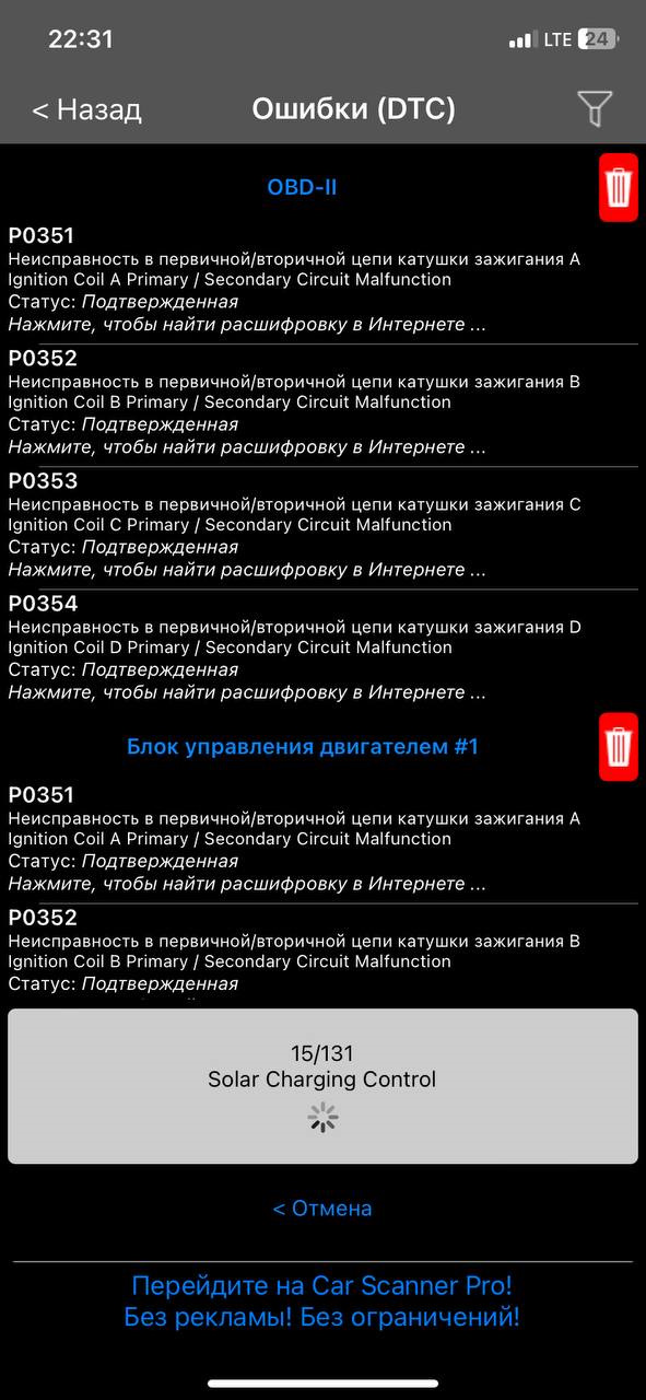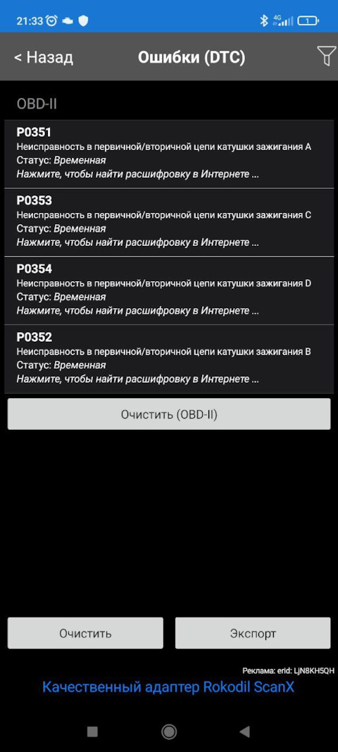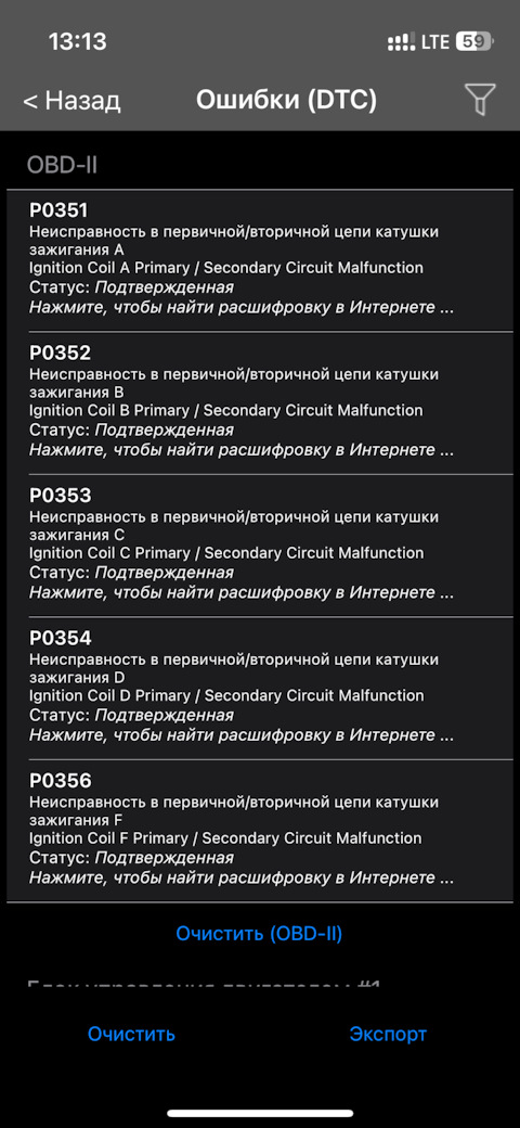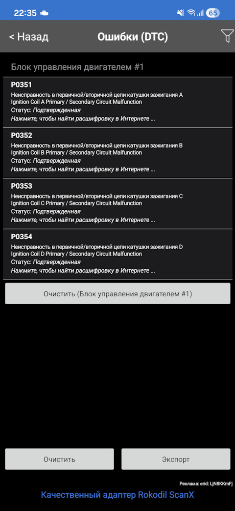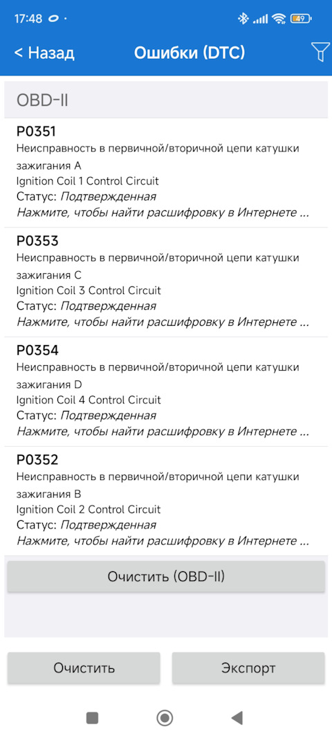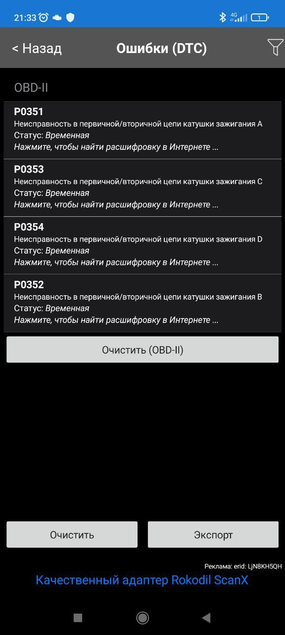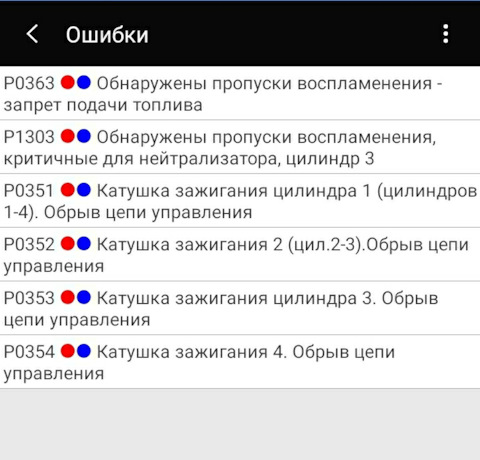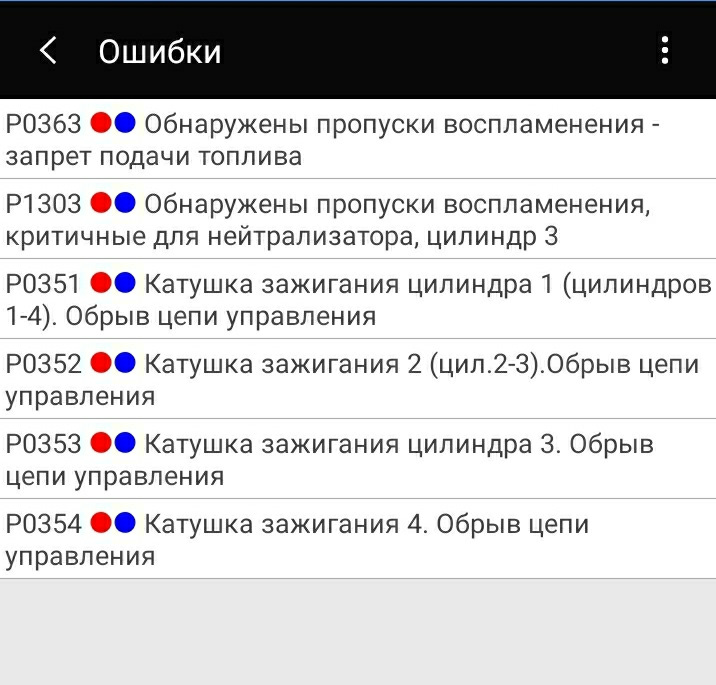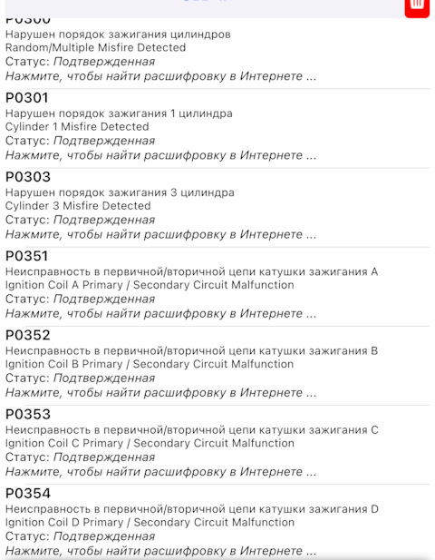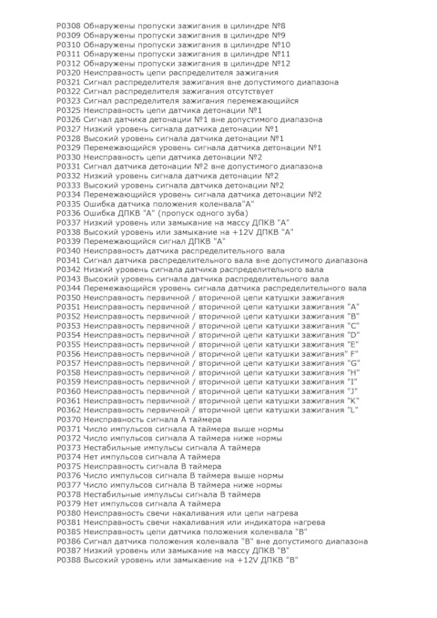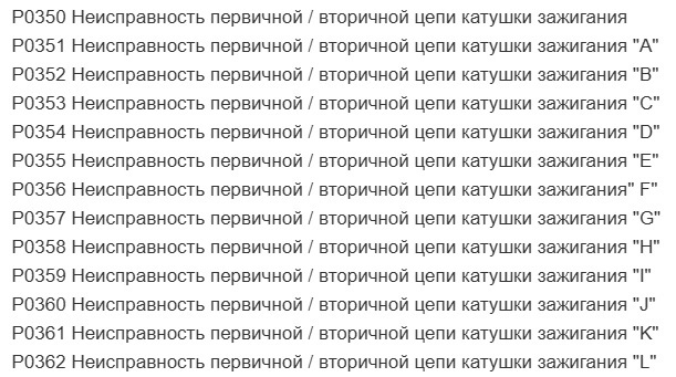 Ошибка ОБД. Категория: Зажигание / пропуски / детонация