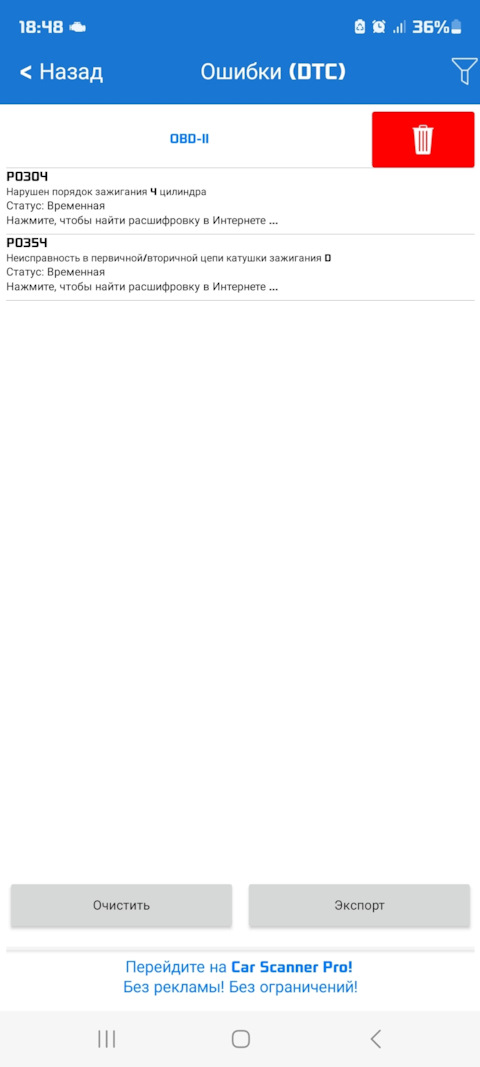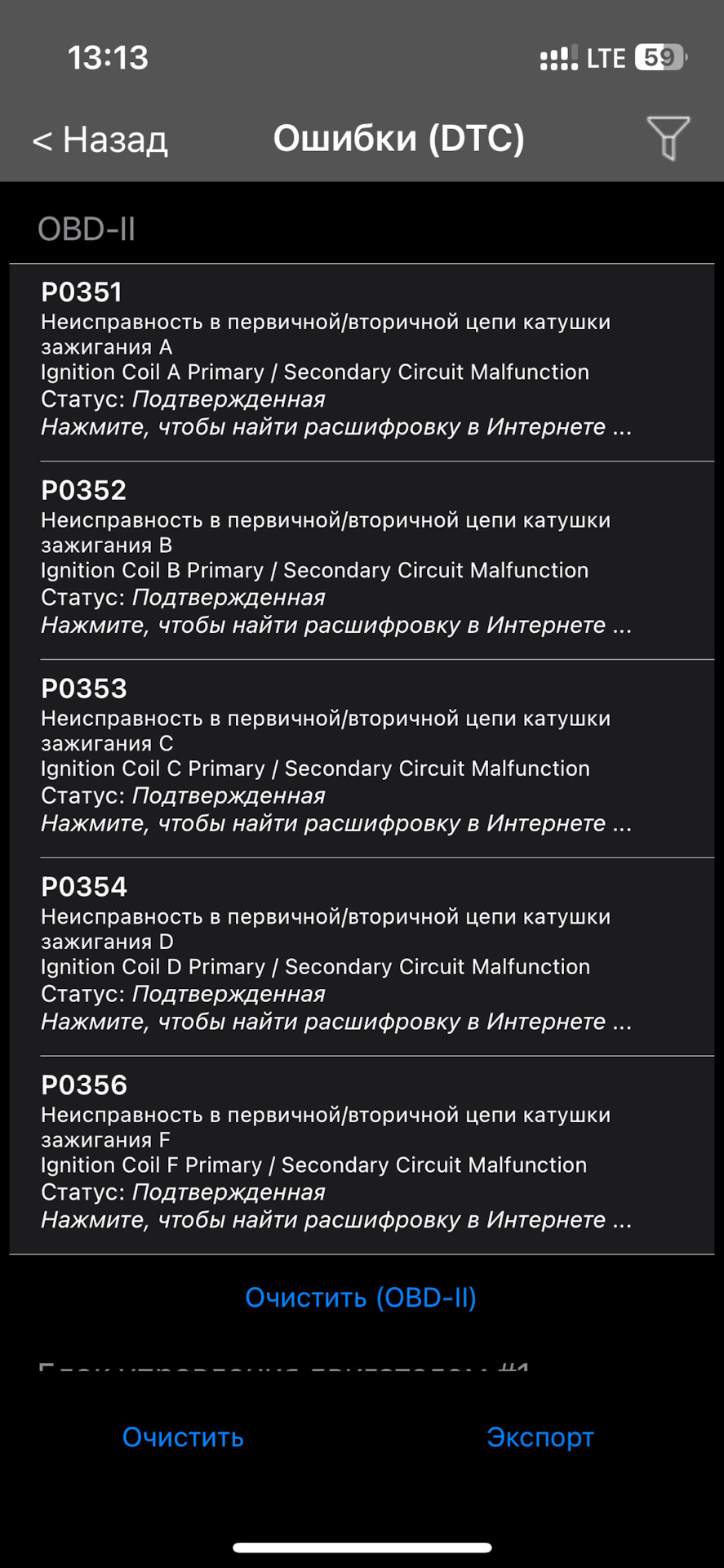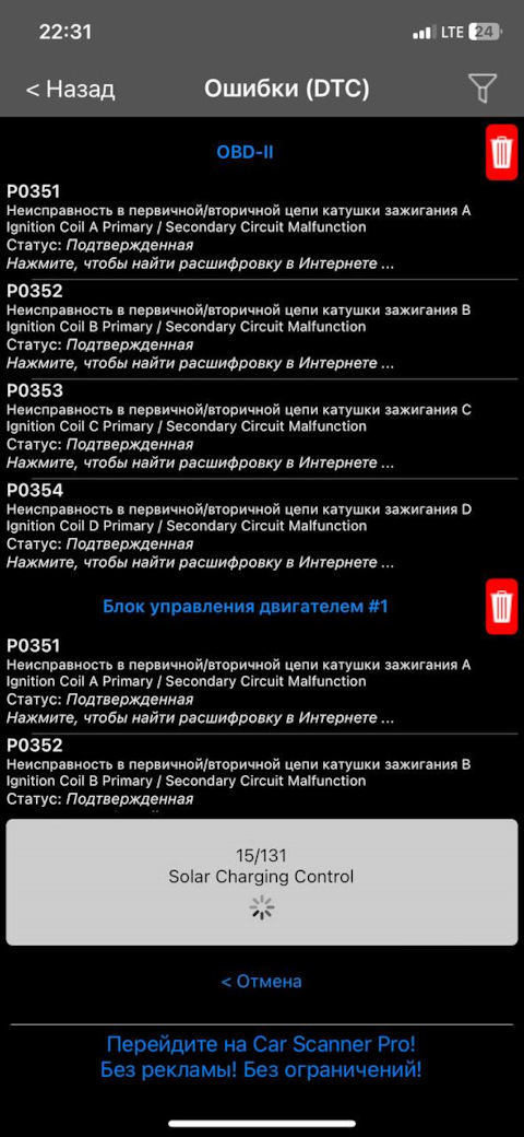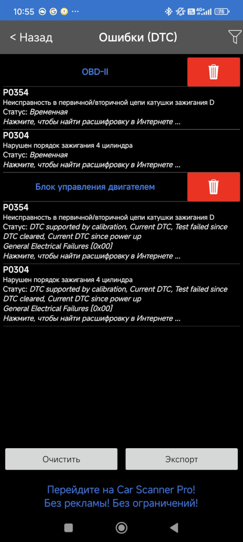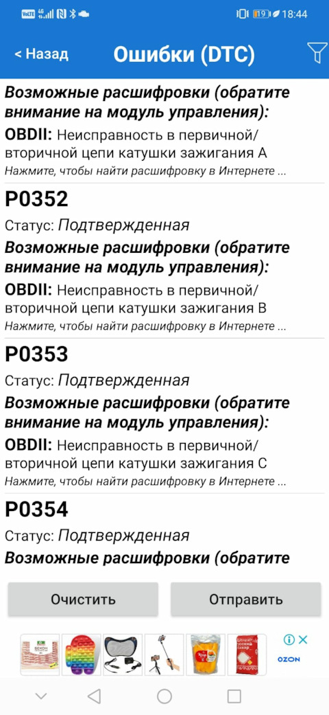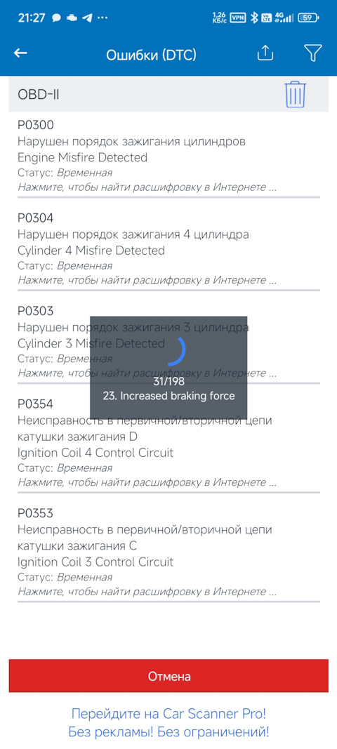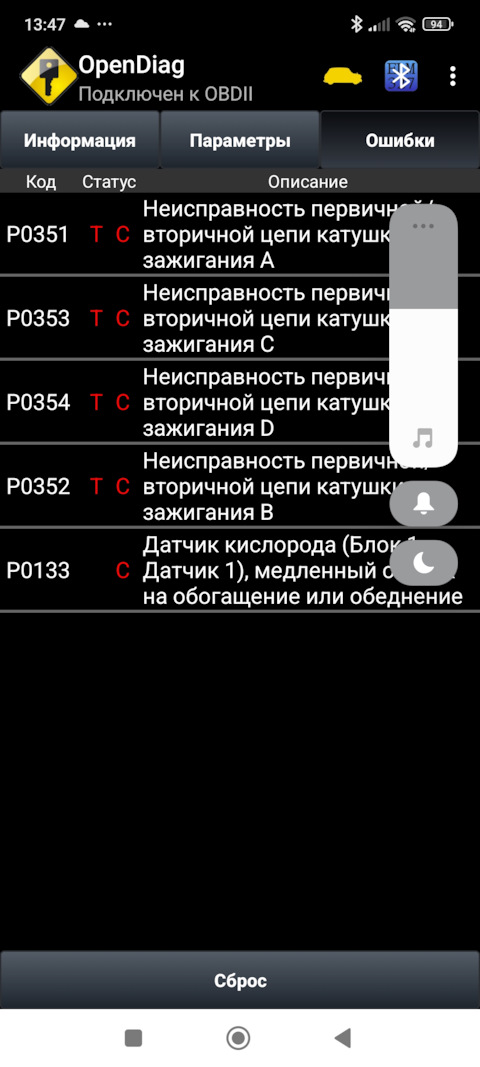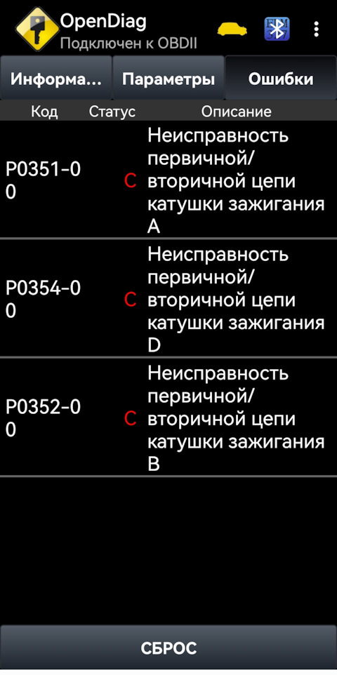Ошибка ОБД. Категория: Зажигание / пропуски / детонация