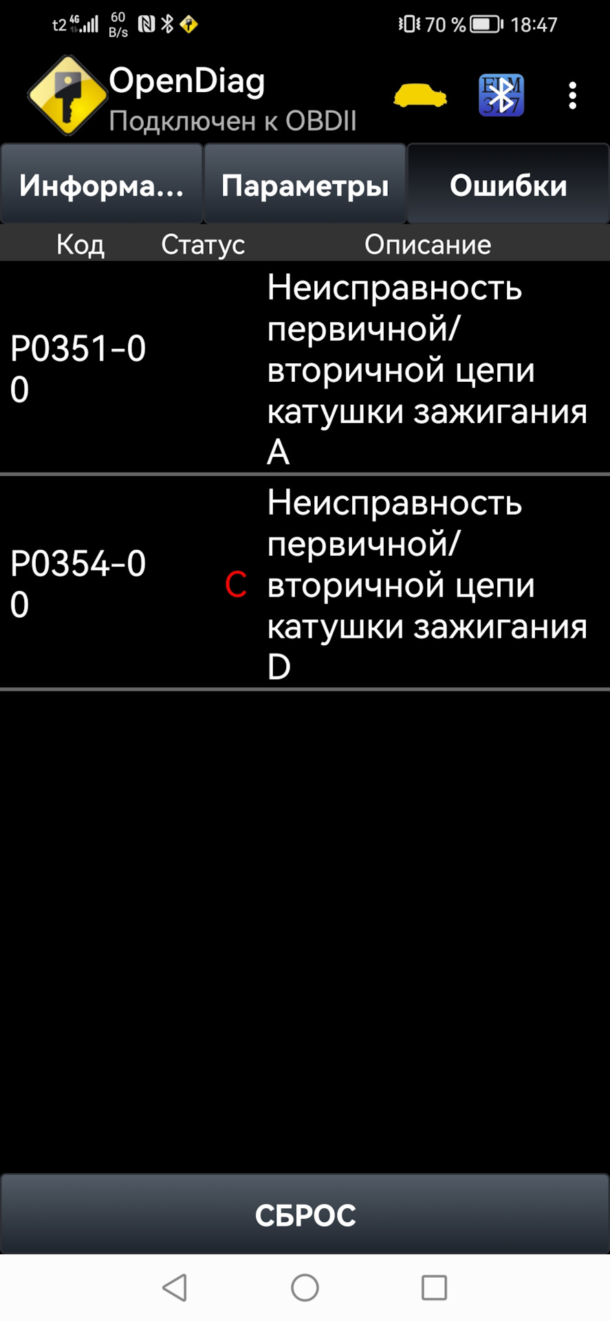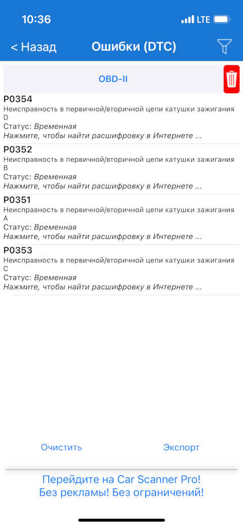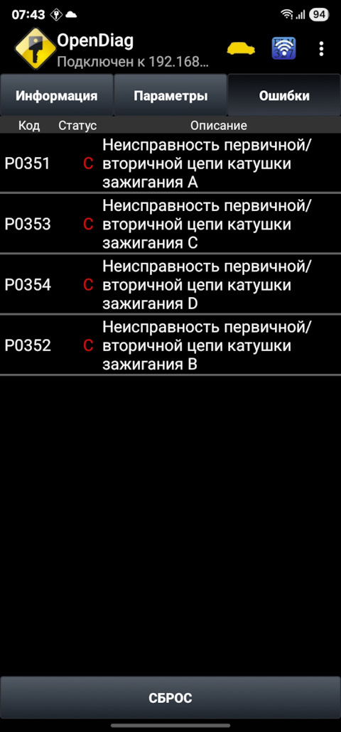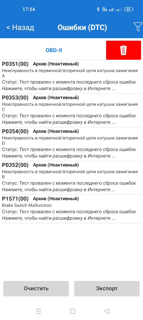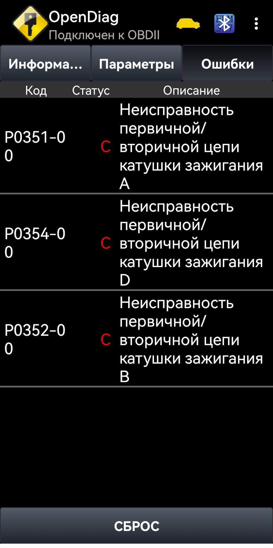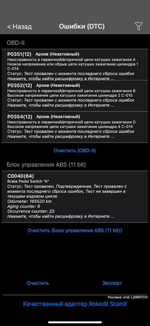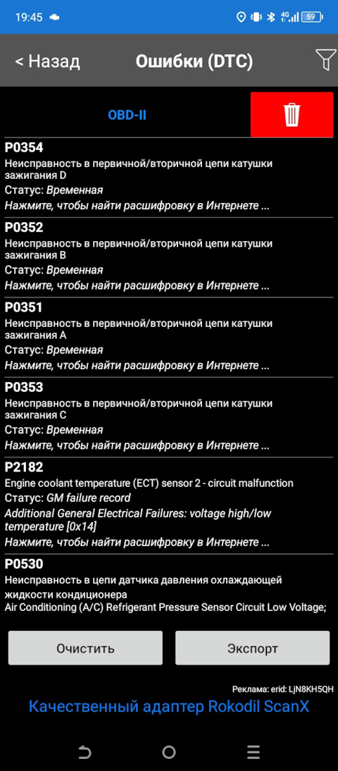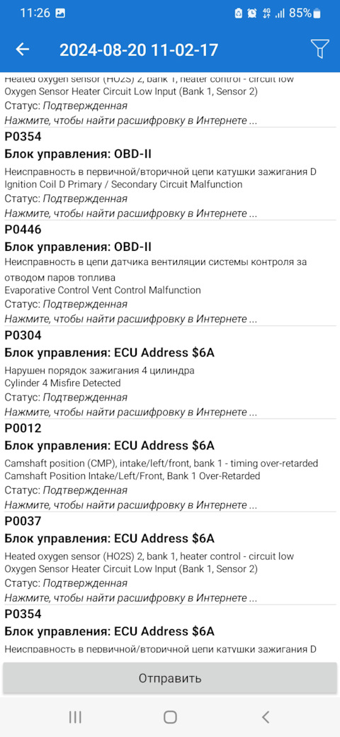 Ошибка ОБД. Категория: Зажигание / пропуски / детонация