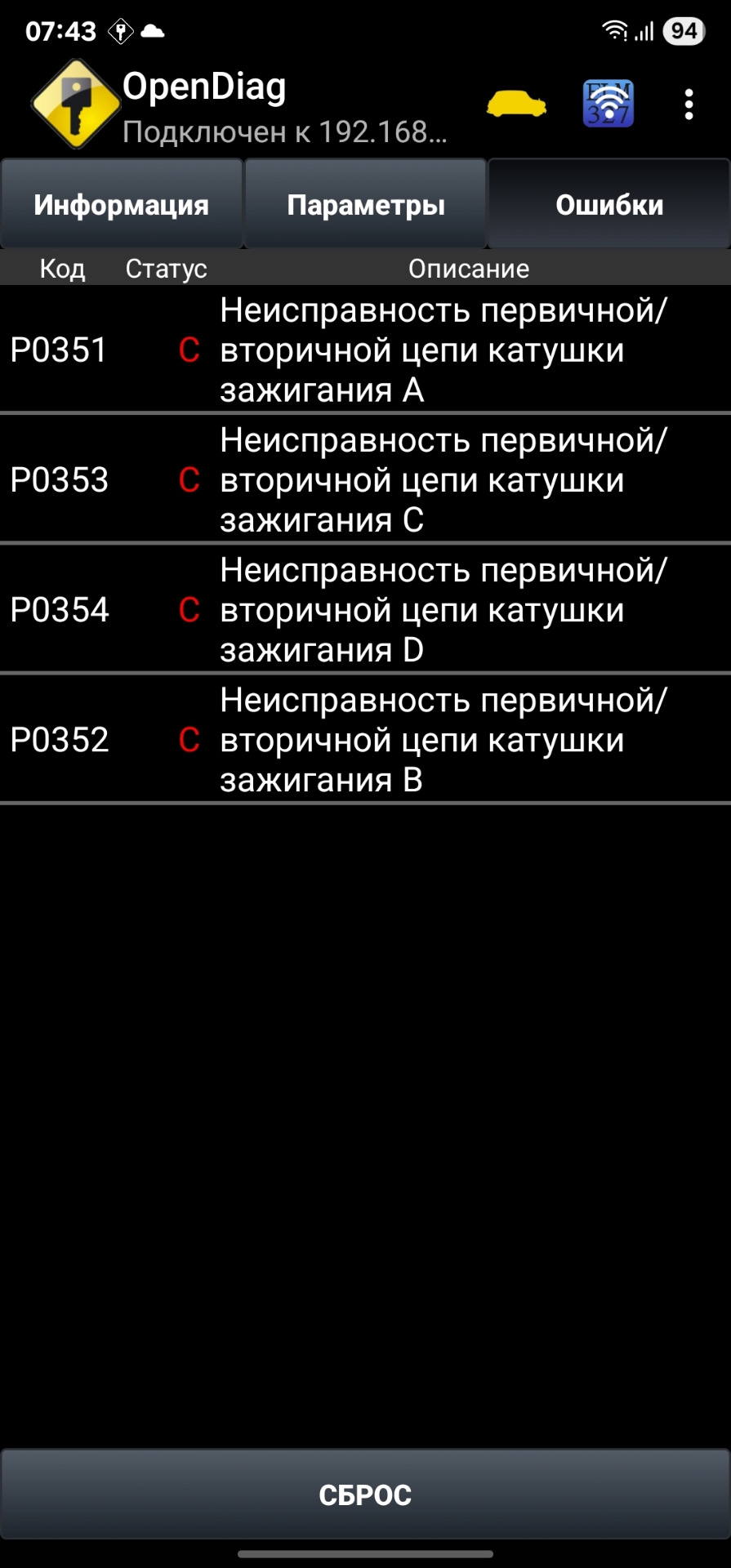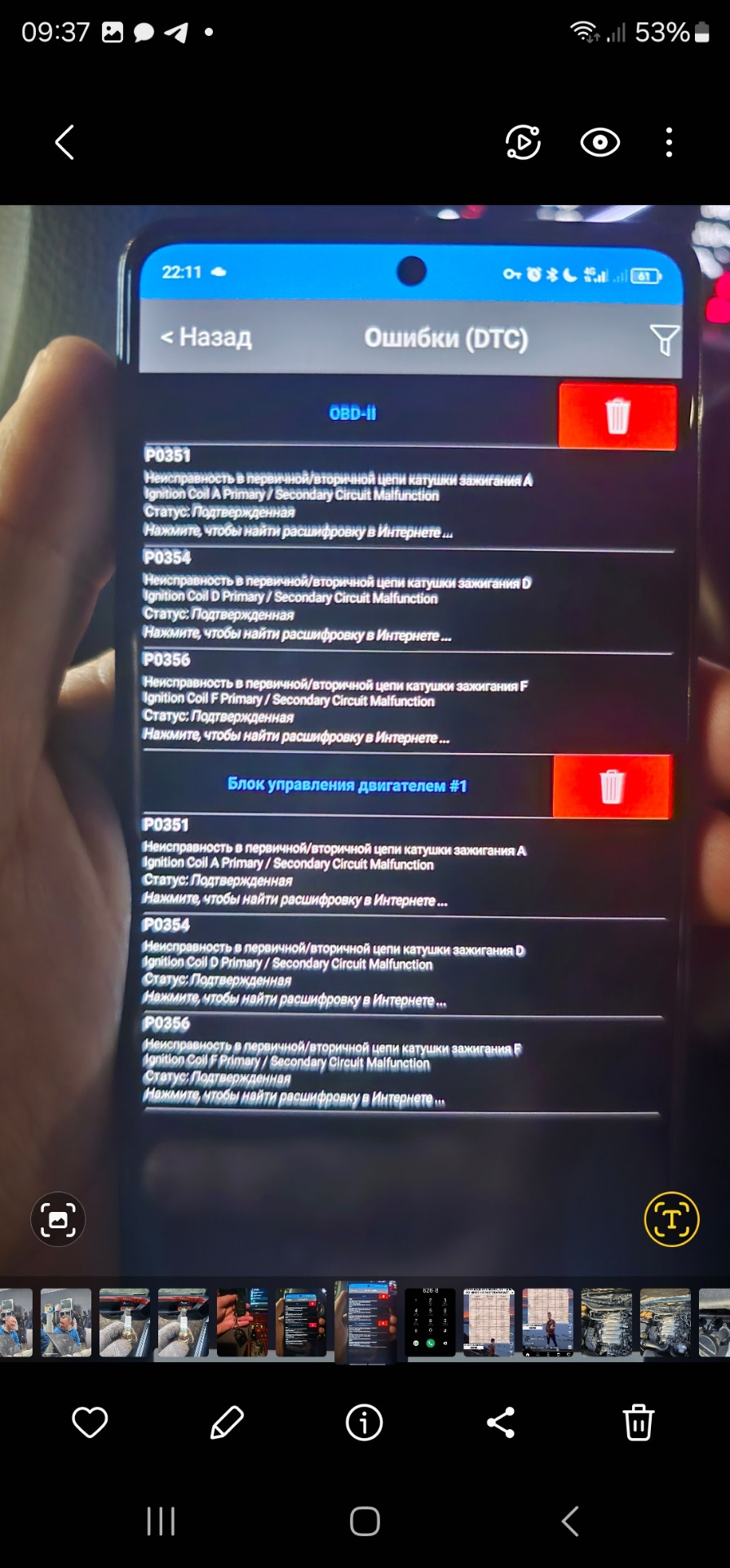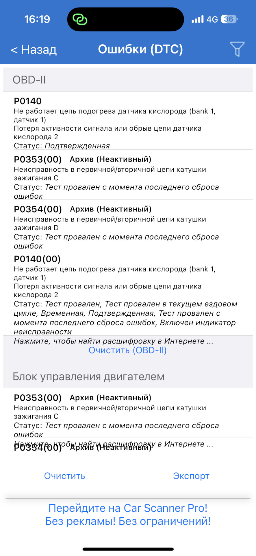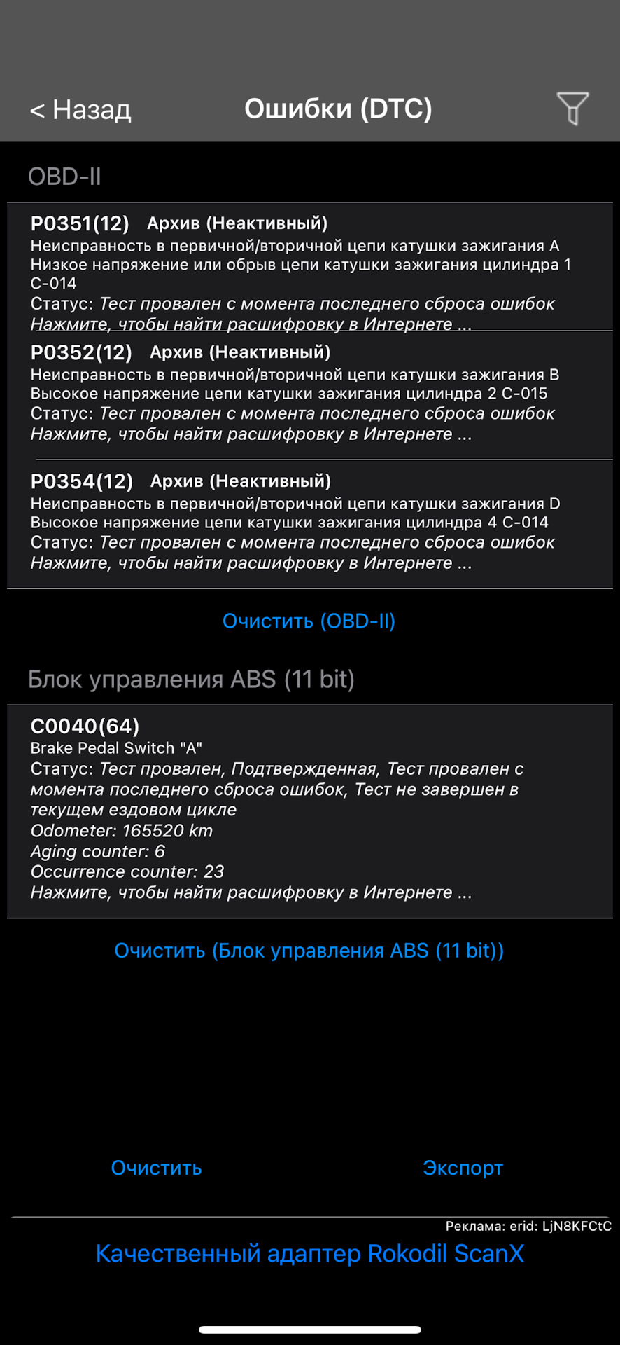 Ошибка ОБД. Категория: Зажигание / пропуски / детонация
