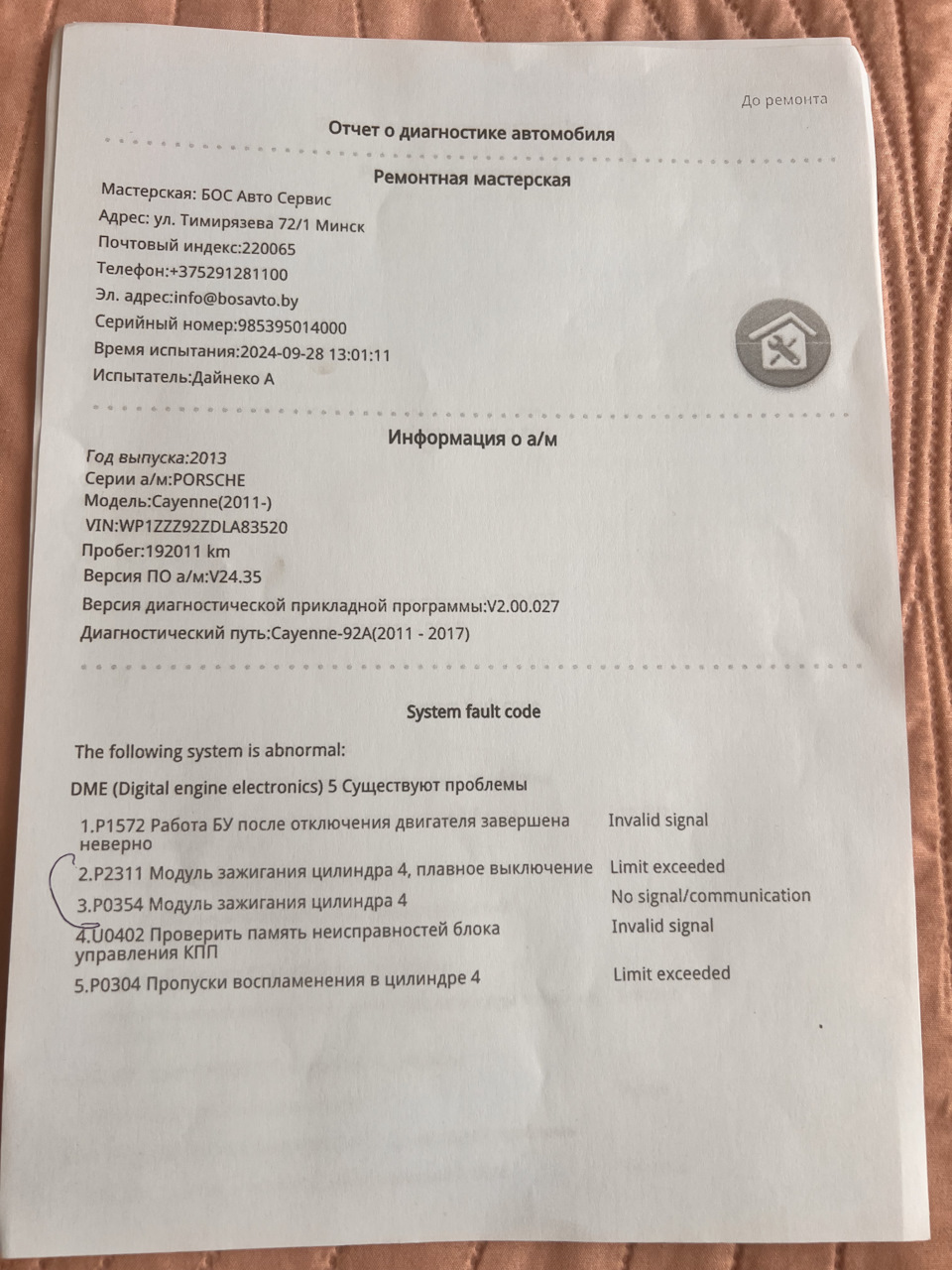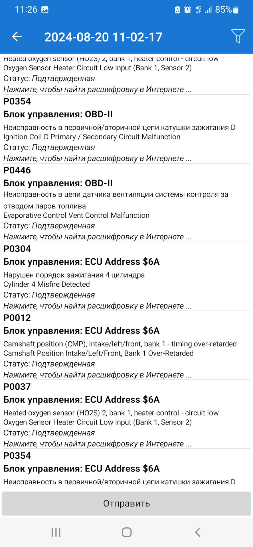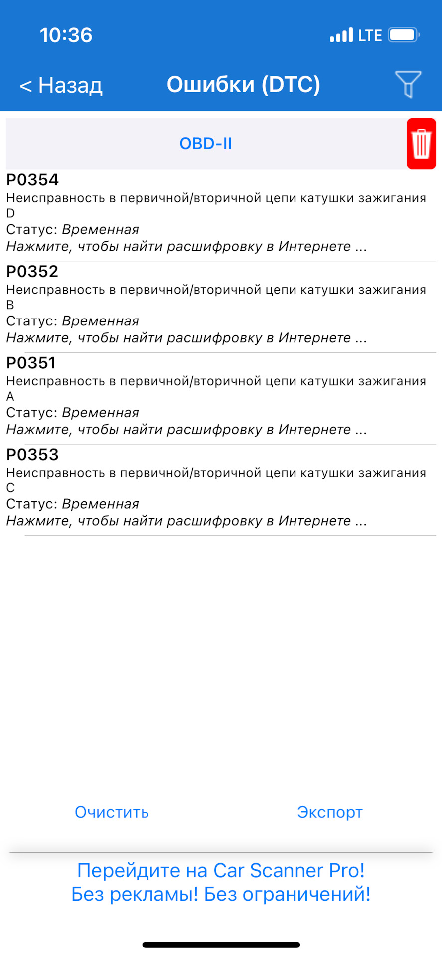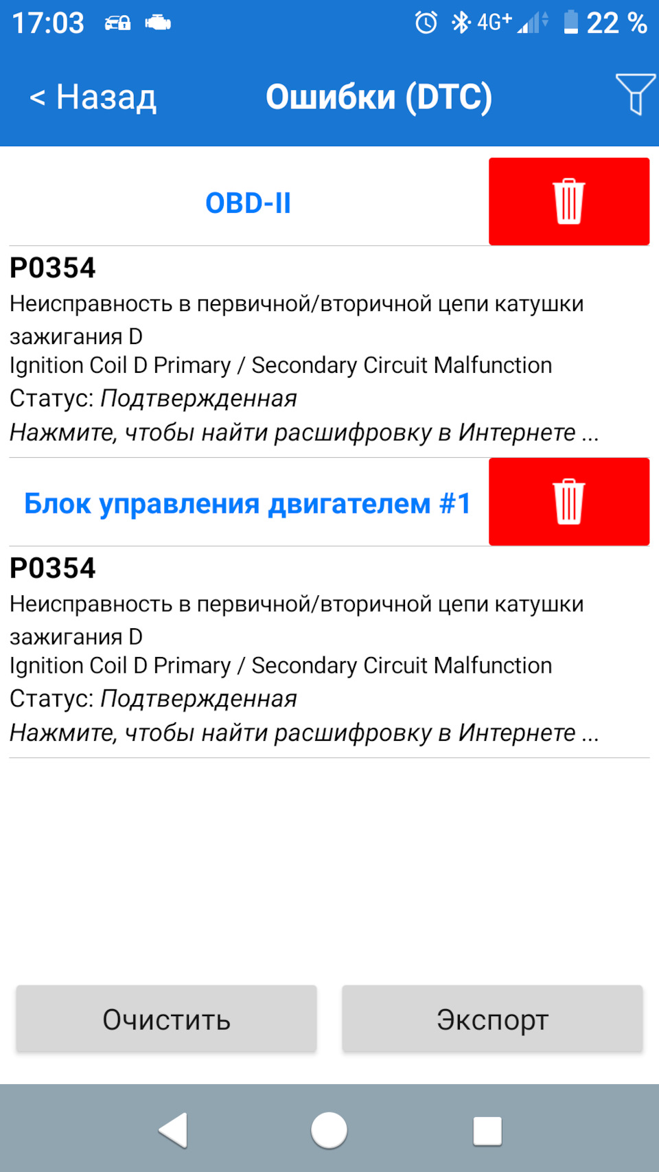 Ошибка ОБД. Категория: Зажигание / пропуски / детонация