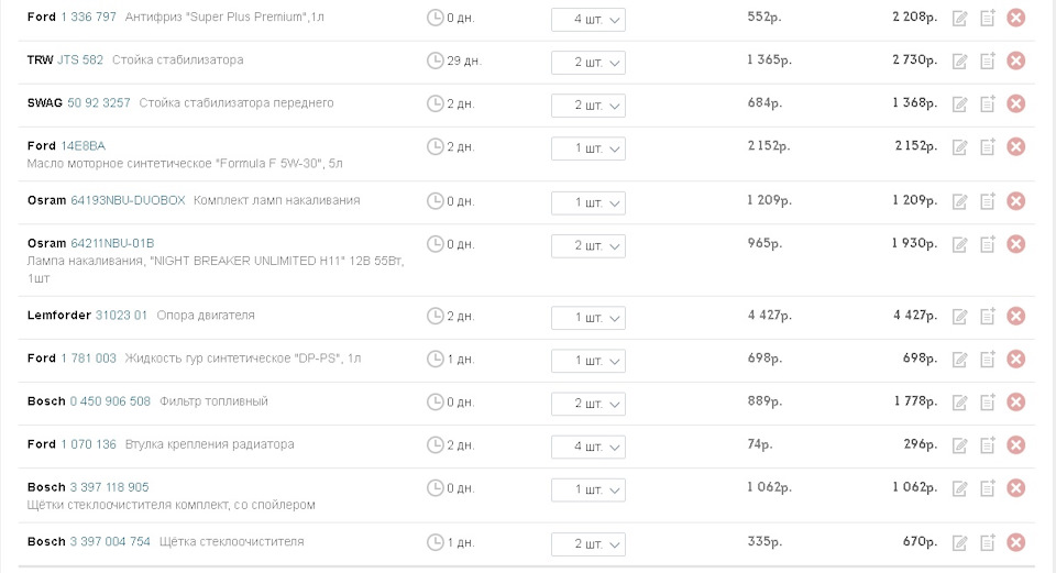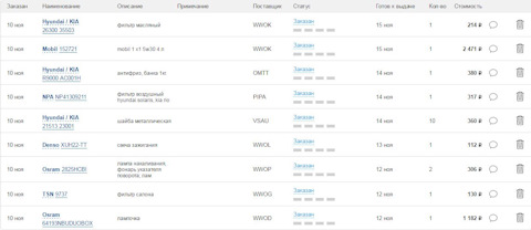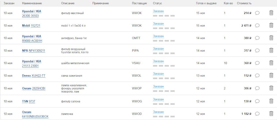 Список запчастей на Rio