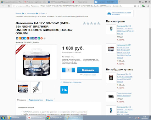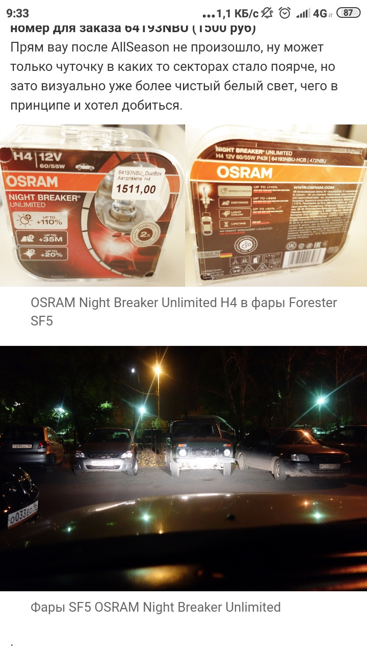 лампы головного света osram night breaker unlimited h4 #part2