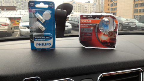 Замена ламп головного света и габаритных огней, а также ламп салонного света и подсветки багажника. Новые рассеиватели салонных плафонов и проба зимних щеток стеклоочистителя
