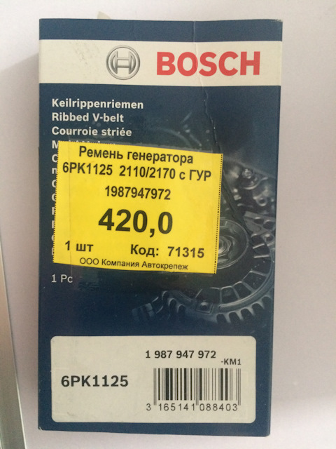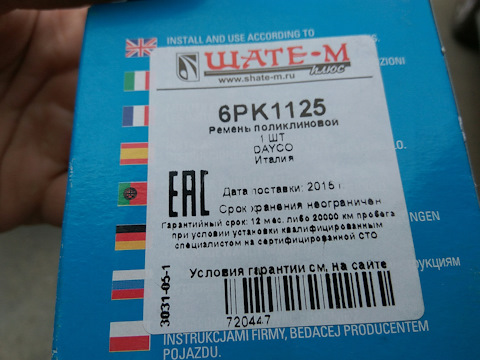 - Ремень поликлиновой 1125mm Audi / Citroen / Fiat / Lada / Peugeot / Renault / Seat / Skoda / VW