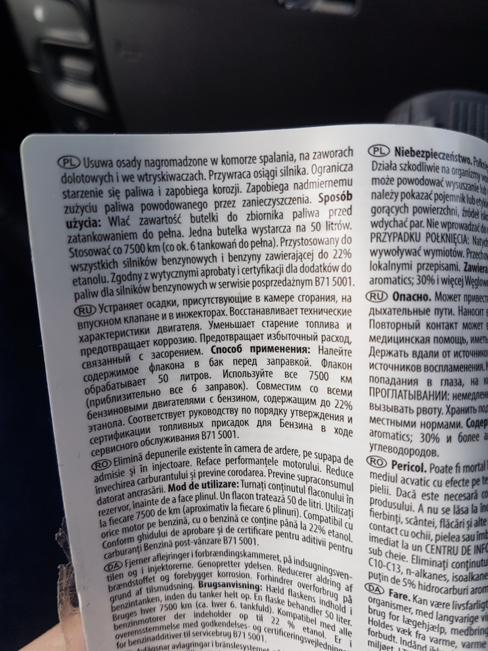 Залил фирменный очиститель топливной системы Peugeot