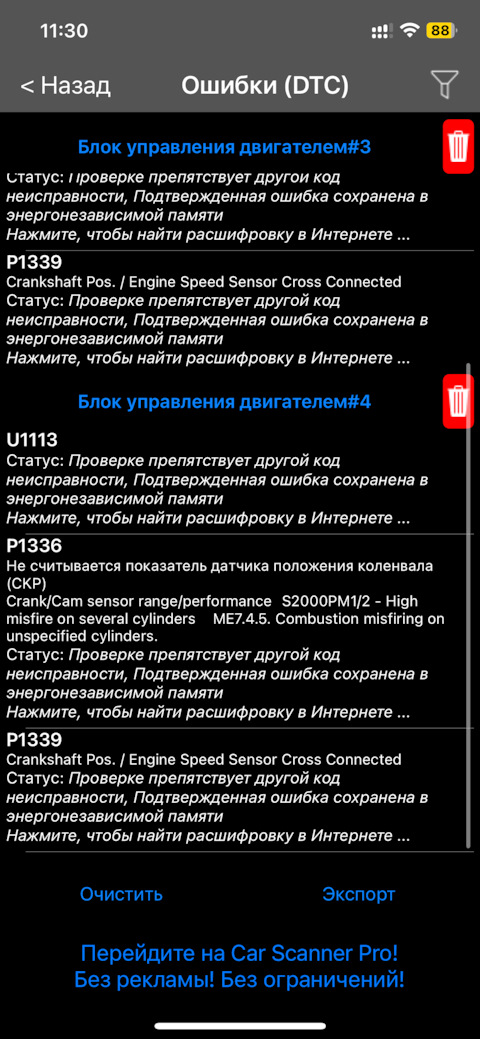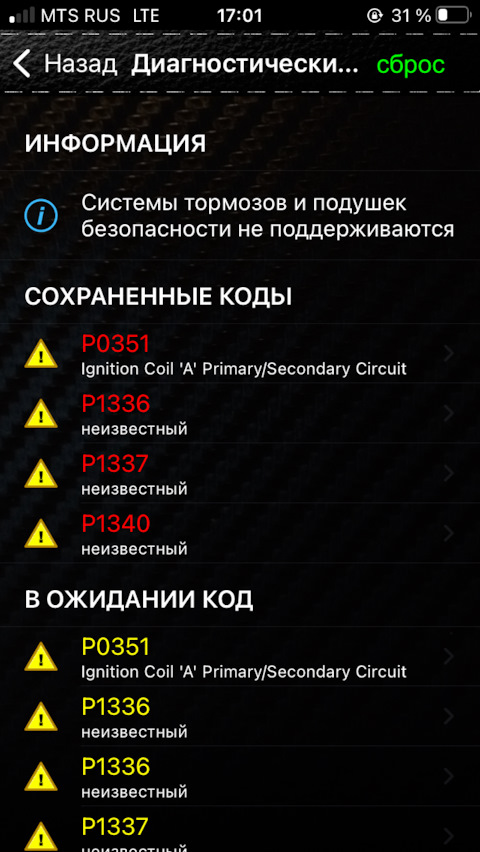 Блуждающая ошибка P1336 пропуски воспламенения и P1338, P1339, P1340 (итог: ТНВД)