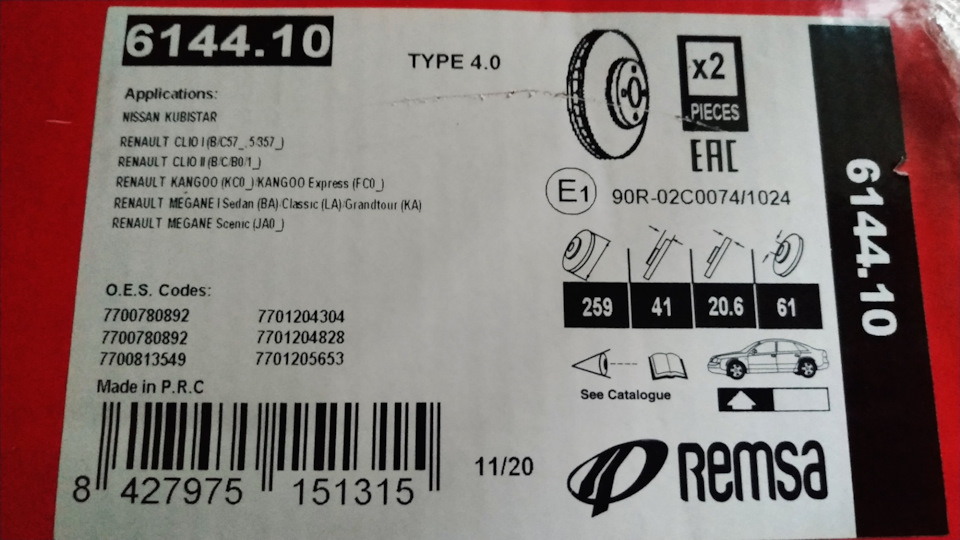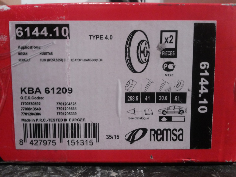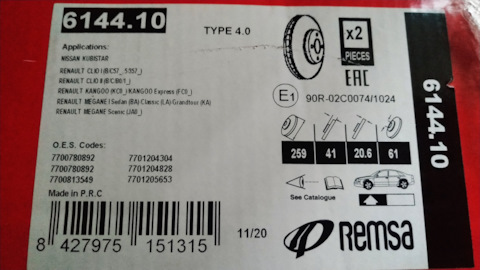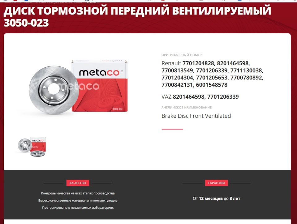 - Диск тормозной комплект 2 шт
