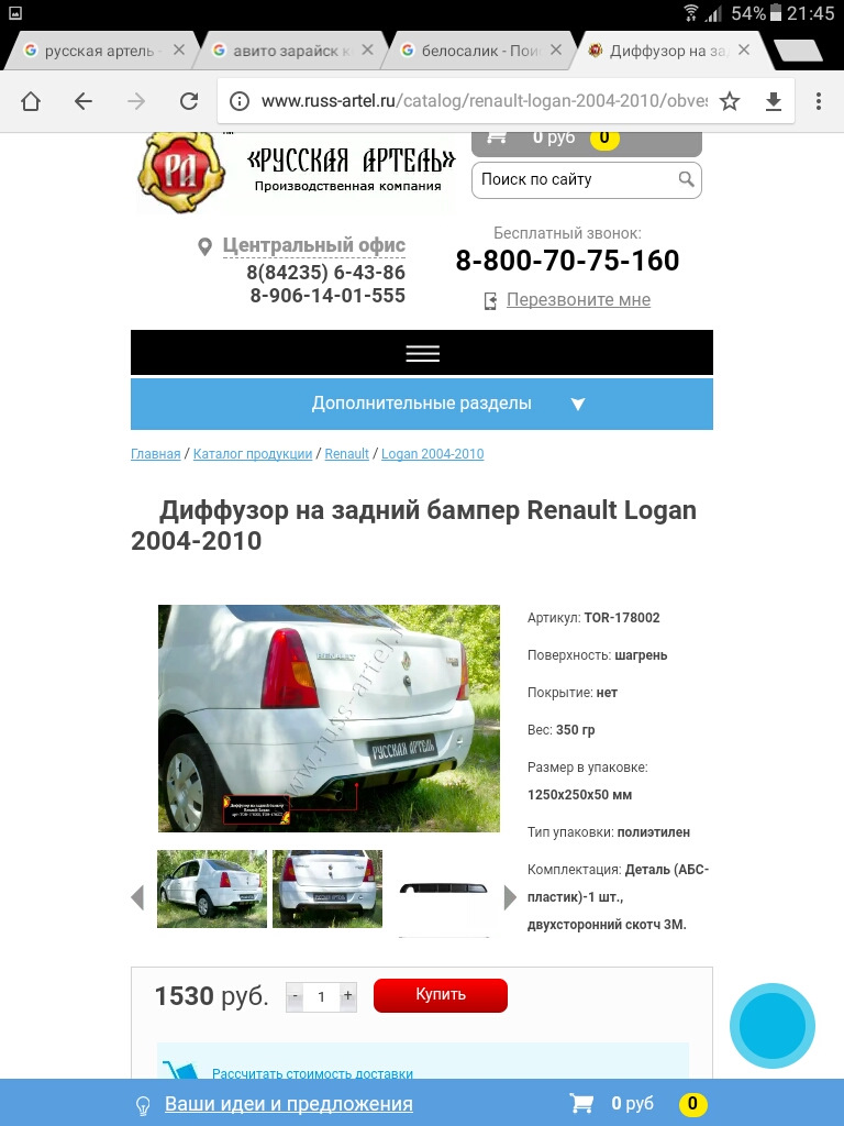 - Renault Logan 2004-2010 Диффузор на задний бампер