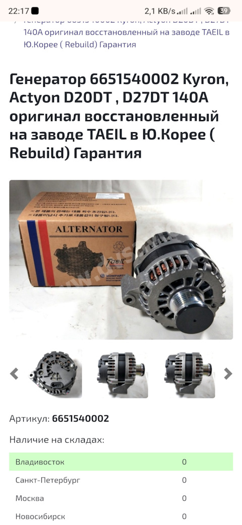 - Контрактный двигатель 2.0 XDi 4x4 SsangYong Kyron 2007