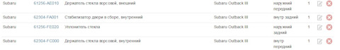 Направляющие стекол (бархатки) 61256-AE010 и 62304-FA001
