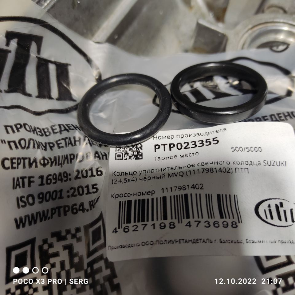- Кольцо уплотнительное свечного колодца