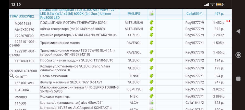 Номера и артикулы запчастей Suzuki Alto HA36S