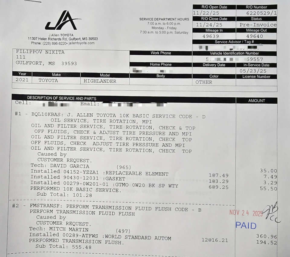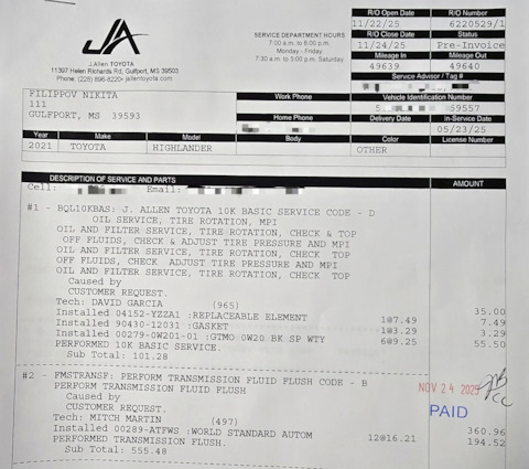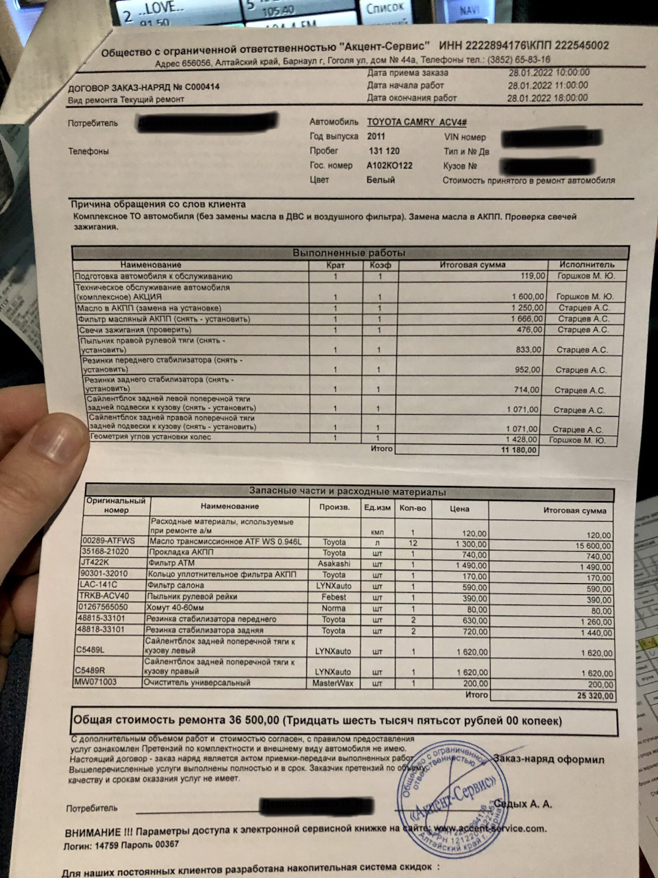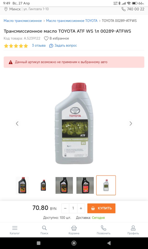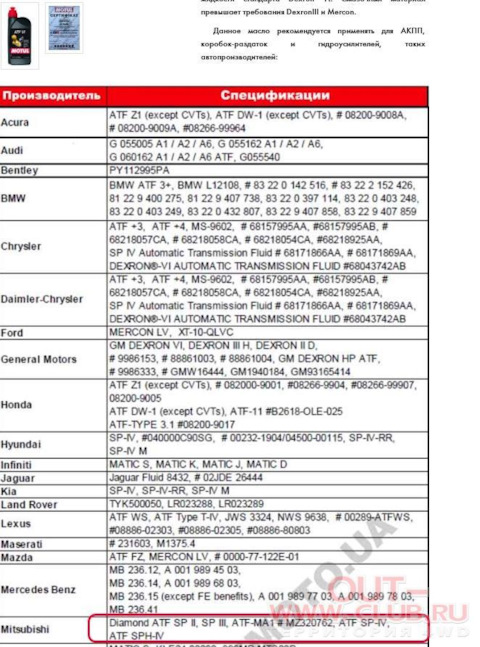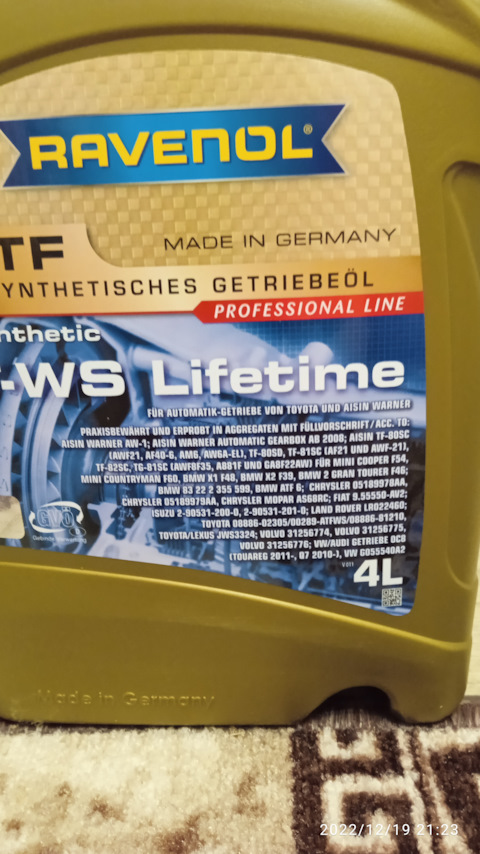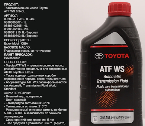 - Масло трансмиссионное синтетическое ATF WS, 1л