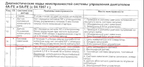 Ошибка двигателя 14