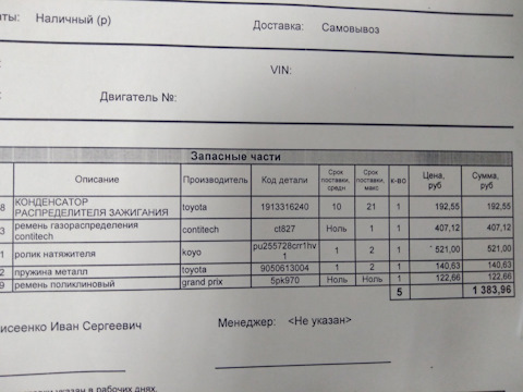 Расходники для замена ремня ГРМ, и оригинальные коврики в салон мне )