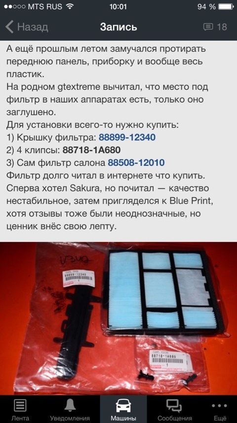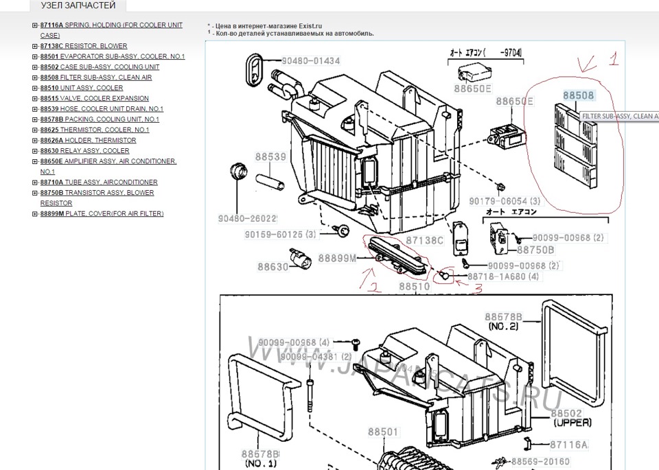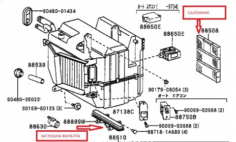 салонный фильтр в Toyota levin AE111 (покупка всего нужного)