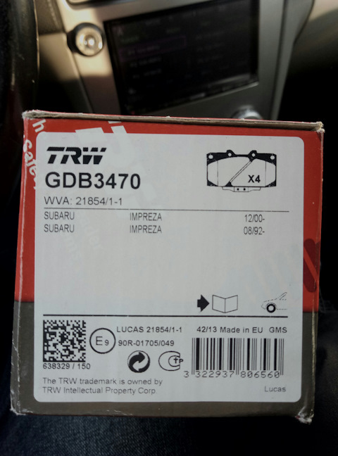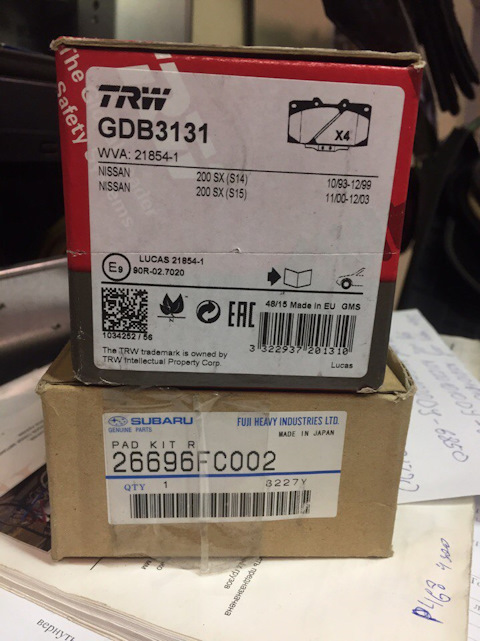 - Комплект тормозных колодок (дисковый тормоз) для SUBARU