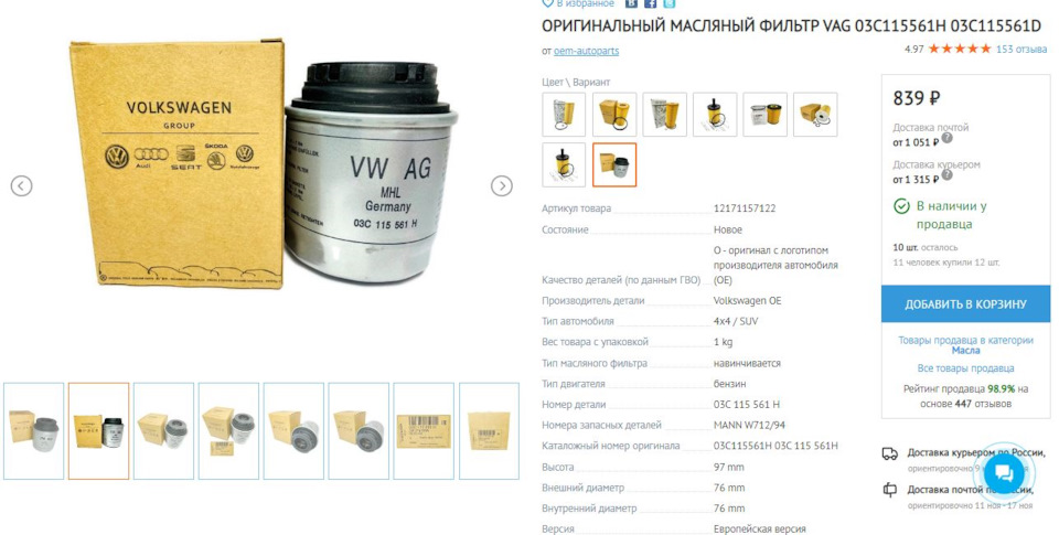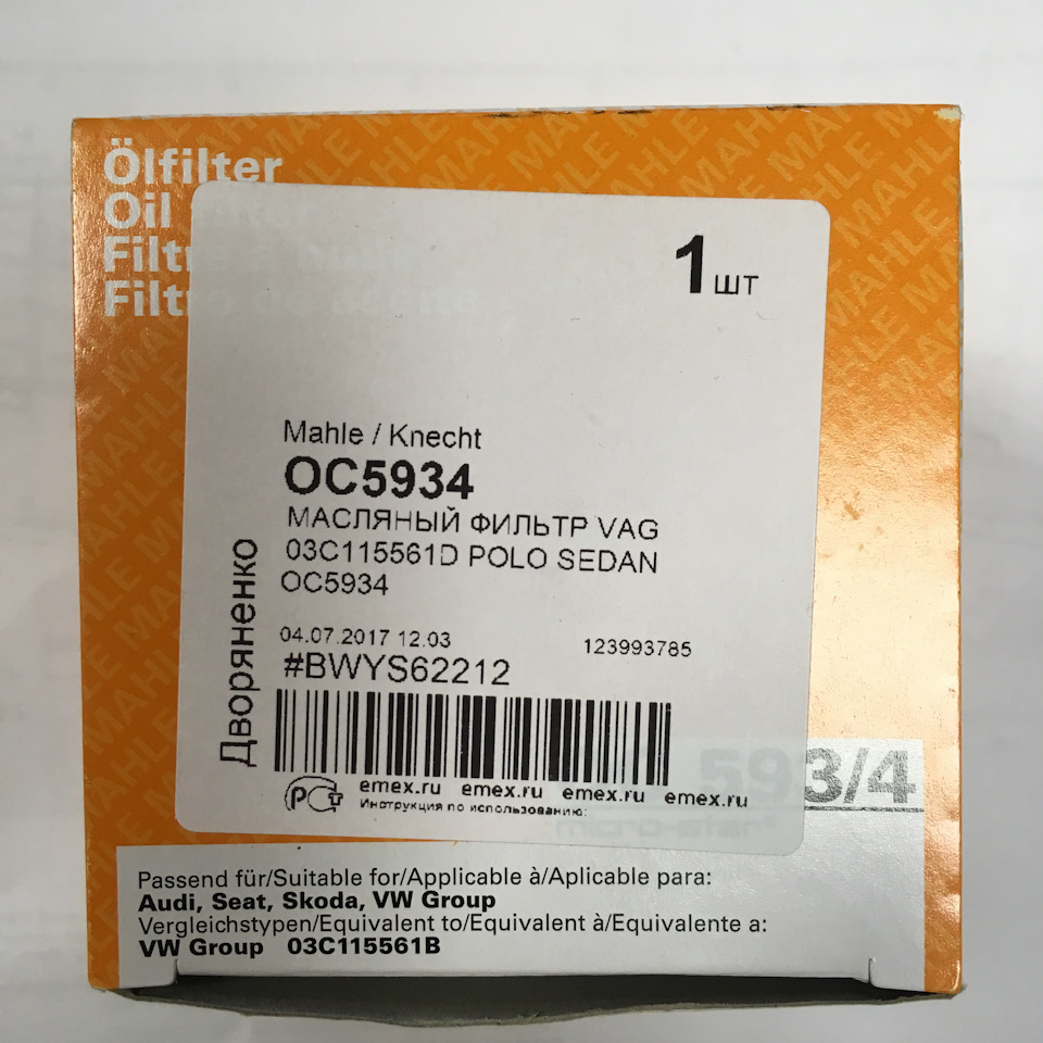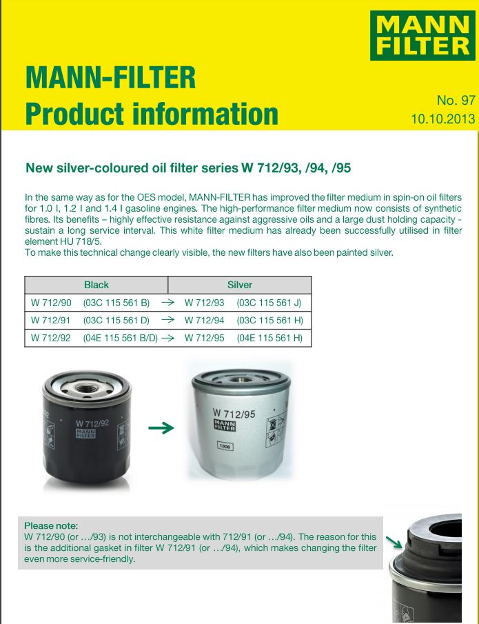 - Фильтр масляный / AUDI, SEAT, SKODA, VW 1.2/1.4 TSI, TFSI 07~