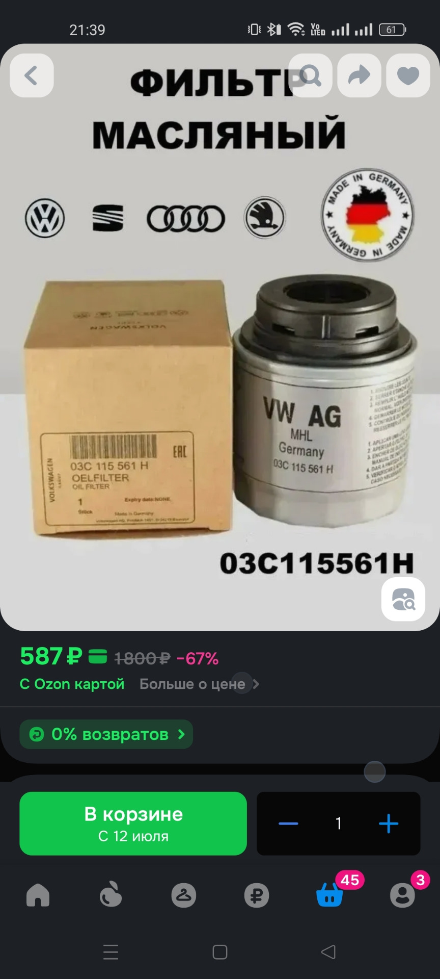 - Фильтр, масляный