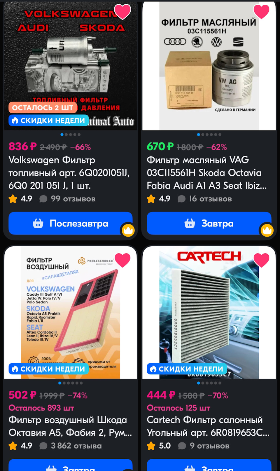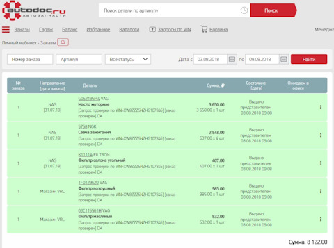 - 1,5 млн. наименований запчастей в ассортименте