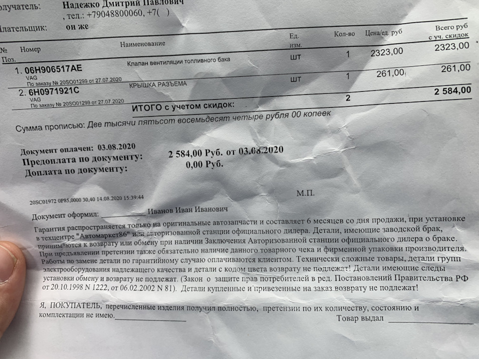 36. Проблема с запахом топлива, часть 2. Успешная