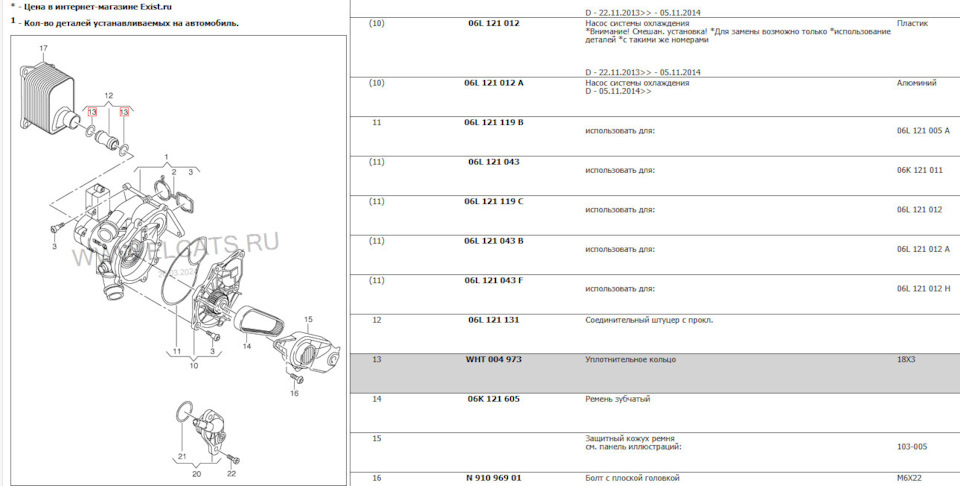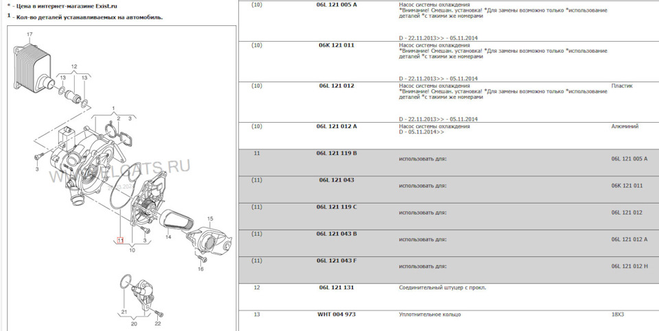 - Насос водяной / AUDI, SKODA, VW 1.8/2.0TFSI 13~