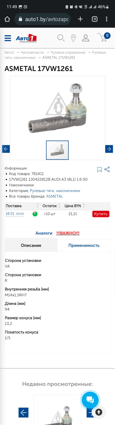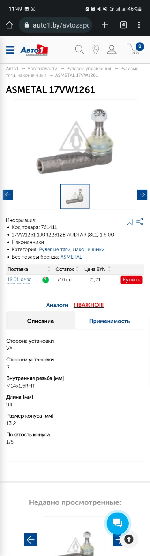 - Наконечник рулевой тяги