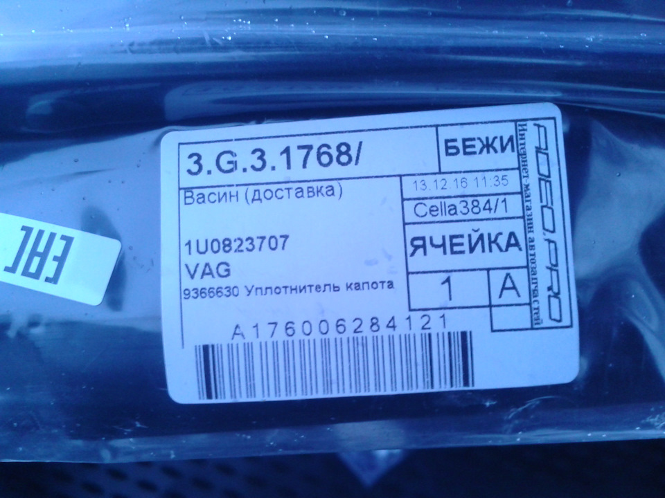 Уплотнители подкапотного, и второй плафон в багажник.Дополнение#1