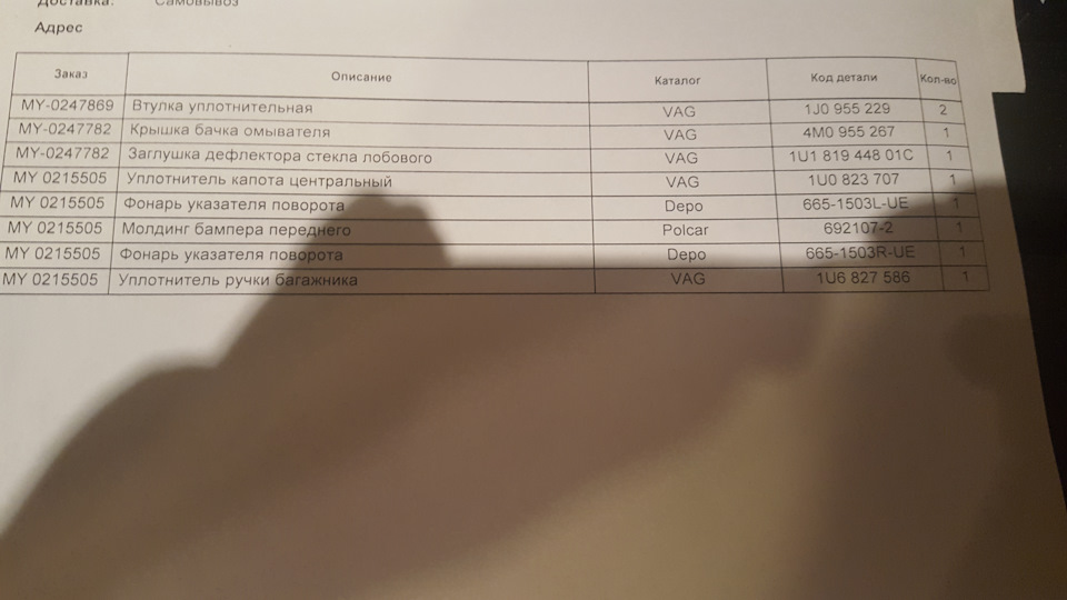Артикулы, номера запчастей.