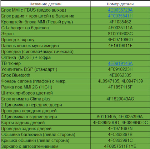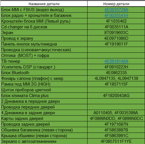 Переход с MMI basic на MMI 2G High начало поиска запчастей v.1 начало