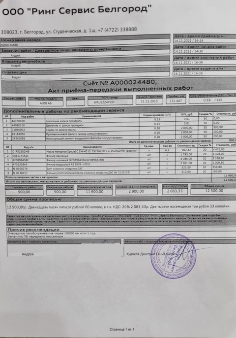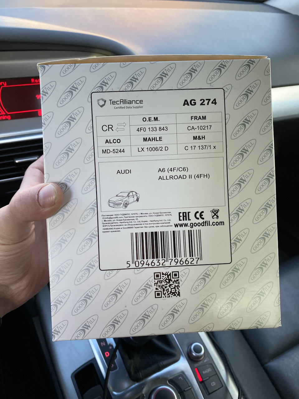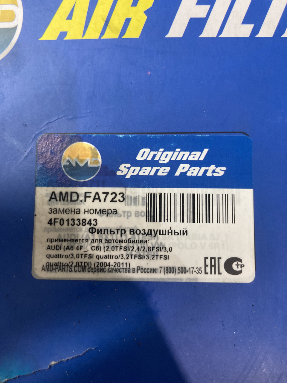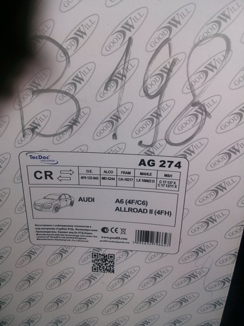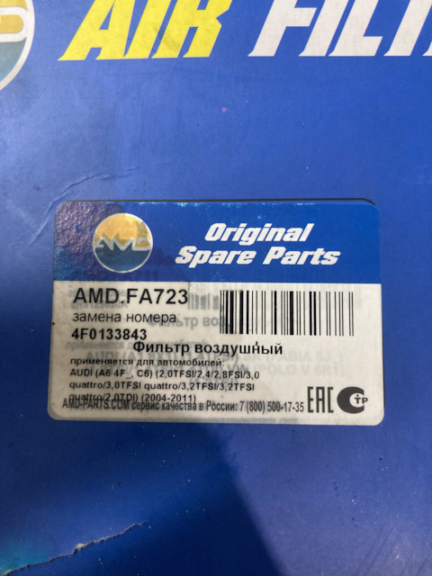 - Фильтр воздушный / AUDI A-6 2.4-4.2 04~