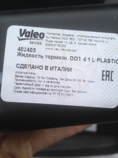 - Жидкость тормозная DOT 4, 1 л