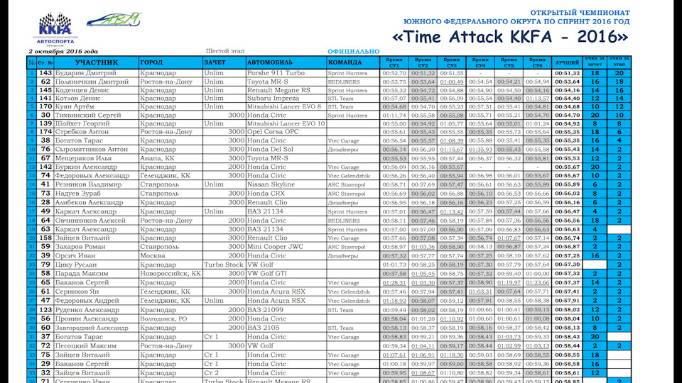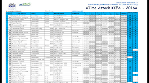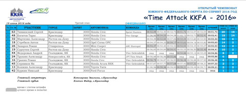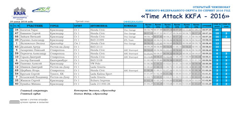 3й этап ОТКРЫТОГО ЧЕМПИОНАТА ЮЖНОГО ФЕДЕРАЛЬНОГО ОКРУГА ПО СПРИНТ 2016 ГОД «Time Attack KKFA — 2016»