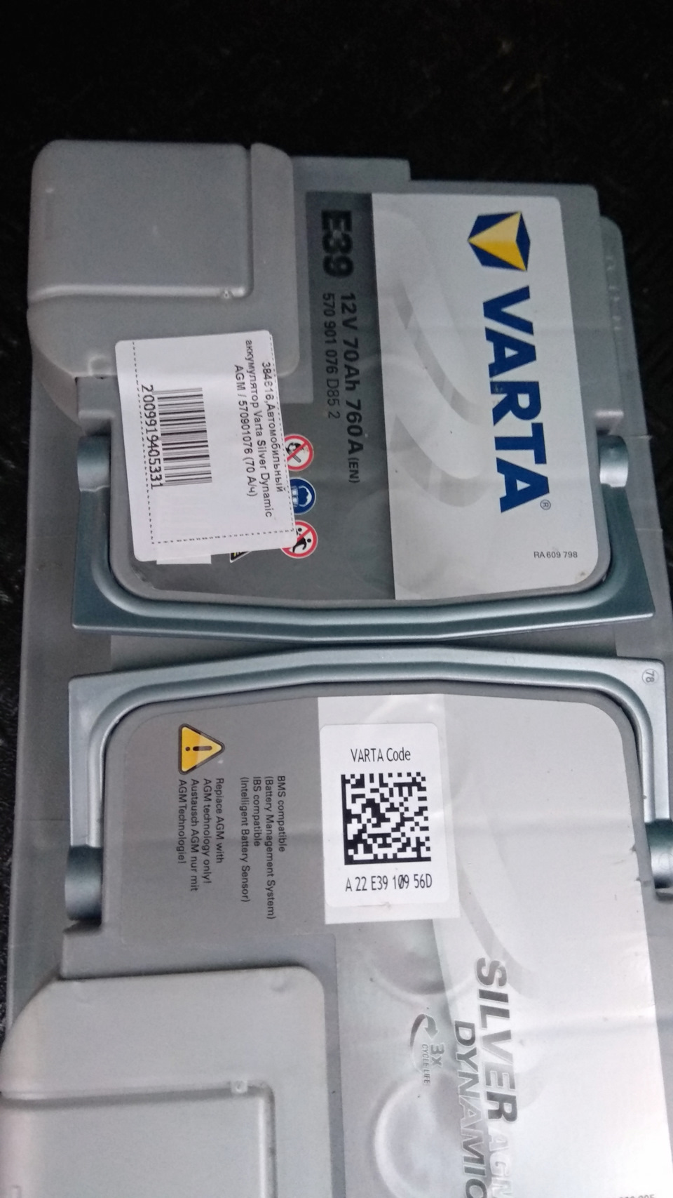 - Аккумулятор Silver Dynamic AGM А/ч ОБР E39 278x175x190 EN 760